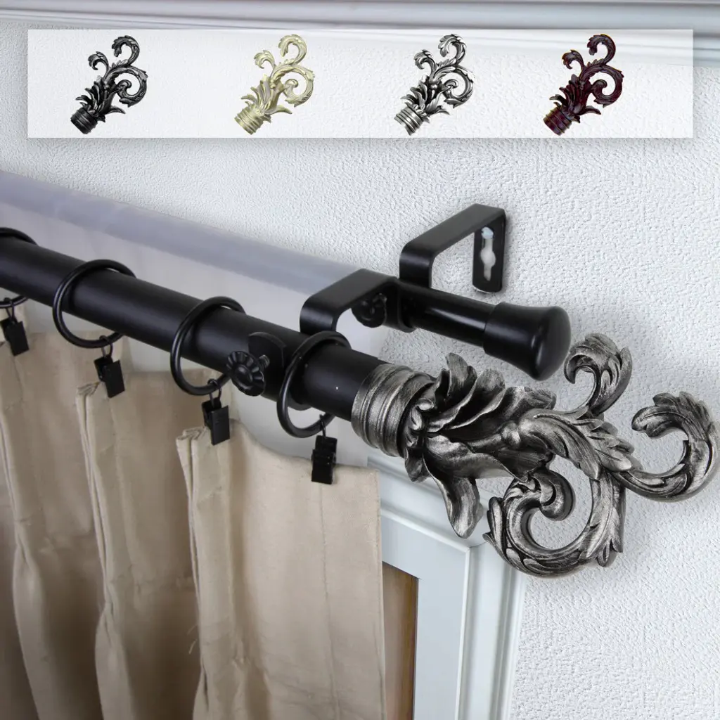 Central Design Products is thrilled to present our top-of-the-line Double Curtain Rods, the ultimate addition to any window treatment. Our high-quality rods are crafted with precision to provide a sleek and modern look to your home decor. Each set includes a double curtain rod, finials, sturdy mounting brackets, and all necessary mounting hardware. The elegant color of our curtain rods adds a touch of sophistication to your space. Upgrade your window treatment with Central Design Products'' Double Curtain Rods today! Includes 1 curtain rod of 1" diameter, one curtain rod of 13/16" diameter, finials, endcaps, mounting brackets, and mounting hardware. Size: 160-240" Projection: 6.75" Front Rod Diameter: 1" / Back Rod Diameter: 13/16" Material: Steel