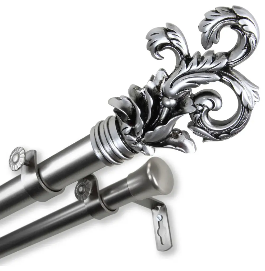 Central Design Products is thrilled to present our top-of-the-line Double Curtain Rods, the ultimate addition to any window treatment. Our high-quality rods are crafted with precision to provide a sleek and modern look to your home decor. Each set includes a double curtain rod, finials, sturdy mounting brackets, and all necessary mounting hardware. The elegant color of our curtain rods adds a touch of sophistication to your space. Upgrade your window treatment with Central Design Products'' Double Curtain Rods today! Includes 1 curtain rod of 1" diameter, one curtain rod of 13/16" diameter, finials, endcaps, mounting brackets, and mounting hardware. Size: 120-170" Projection: 6.75" Front Rod Diameter: 1" / Back Rod Diameter: 13/16" Material: Steel