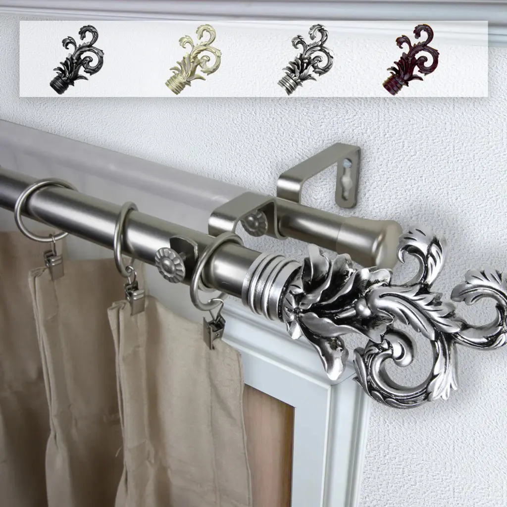 Central Design Products is thrilled to present our top-of-the-line Double Curtain Rods, the ultimate addition to any window treatment. Our high-quality rods are crafted with precision to provide a sleek and modern look to your home decor. Each set includes a double curtain rod, finials, sturdy mounting brackets, and all necessary mounting hardware. The elegant color of our curtain rods adds a touch of sophistication to your space. Upgrade your window treatment with Central Design Products'' Double Curtain Rods today! Includes 1 curtain rod of 1" diameter, one curtain rod of 13/16" diameter, finials, endcaps, mounting brackets, and mounting hardware. Size: 28-48" Projection: 6.75" Front Rod Diameter: 1" / Back Rod Diameter: 13/16" Material: Steel