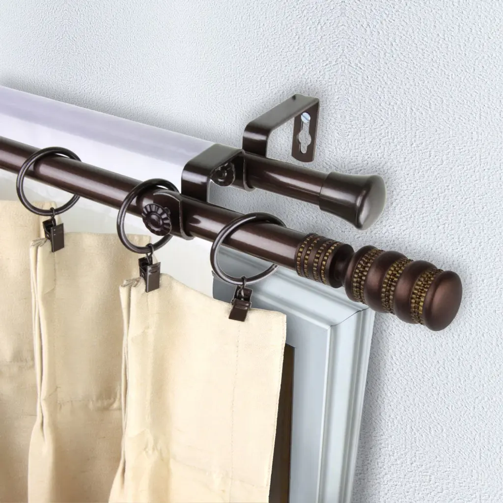 Introduce an elegant touch to your window treatment with this beautiful 13/16" diameter double curtain rod set, made of high quality steel rods. Includes 2 telescoping steel pole, mounting hardware, brackets, and 2 finials Projection: 2.875" Finial measurement: 4" W x 1.4" H x 1.4" D