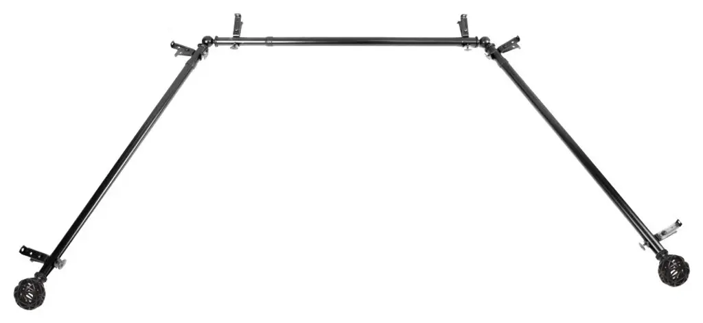 Our Multi Sided Bay Window Rod are the perfect way to decorate a multi-sided bay window with a stylist touch not often found. Offered in 3 different variations, 4, 5 and 6-sided rods can be used for multi window and bay windows. Rods connect using our corner connector which allows for a nearly 360 rotation.Includes four 13/16" diameter rods, 2 finials, 3 corner connectors, and mounting hardware. Rod Projection: 2.875"Finial Measurement: 2-1/4" W X 2-3/8" H x 2-3/8" DEach rod extends from 28-48"Steel Rod and Resin Finial Instruction Included