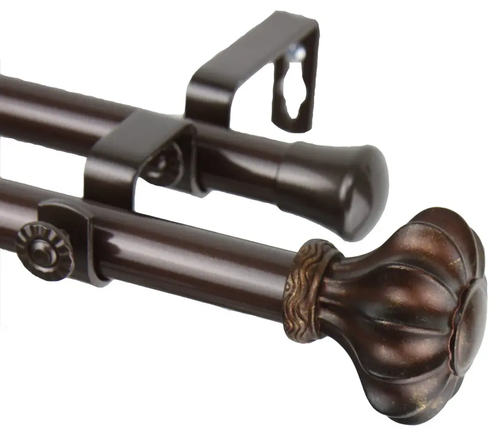 Maurice 13/16 Inch Double Corner Window Curtain Rod, Cocoa, 48-84"