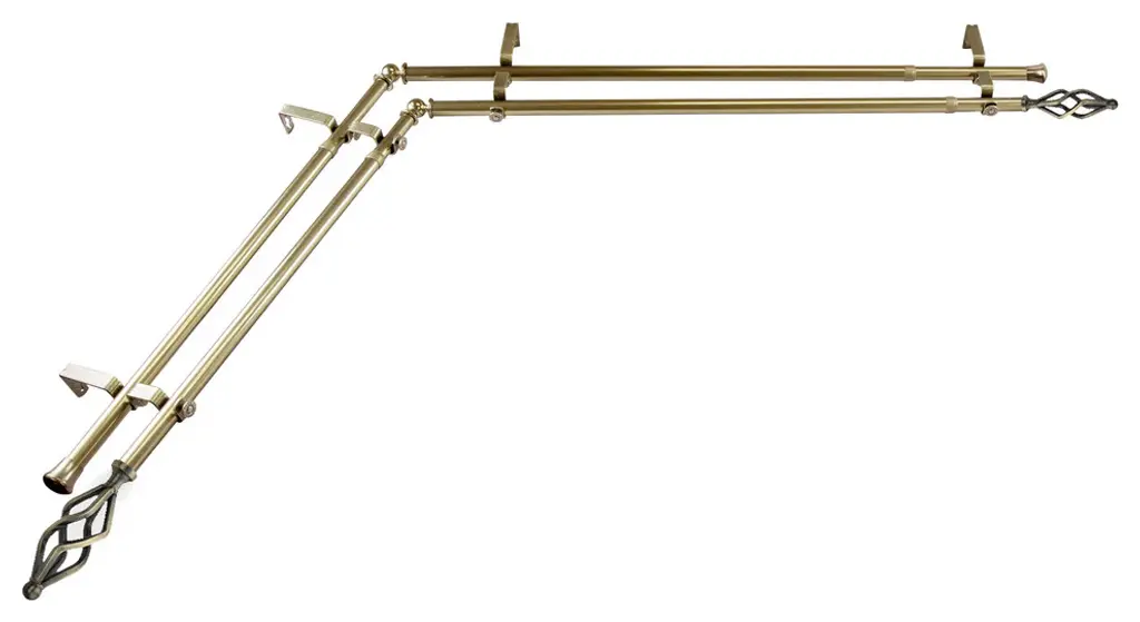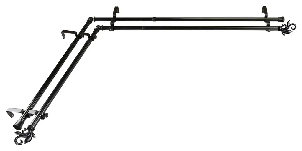 Easily and effortlessly decorate your corner windows with curtains and sheers/valences. 2 sets of two 13/16 in. curtain rods attach via corner ball connector that allows for nearly 360 of rotation. These high quality steel rods are accented with decorative finial end pieces.Includes: four 13/16" in diameter rods, finials, corner connectors, and mounting hardware.Front rod projection: 6.375 in. back rod projection: 3.75 in.Finial Measurement: 2-1/4" W X 2-3/8" H x 2-3/8" DSteel Rod and Resin FinialInstallation instructions included
