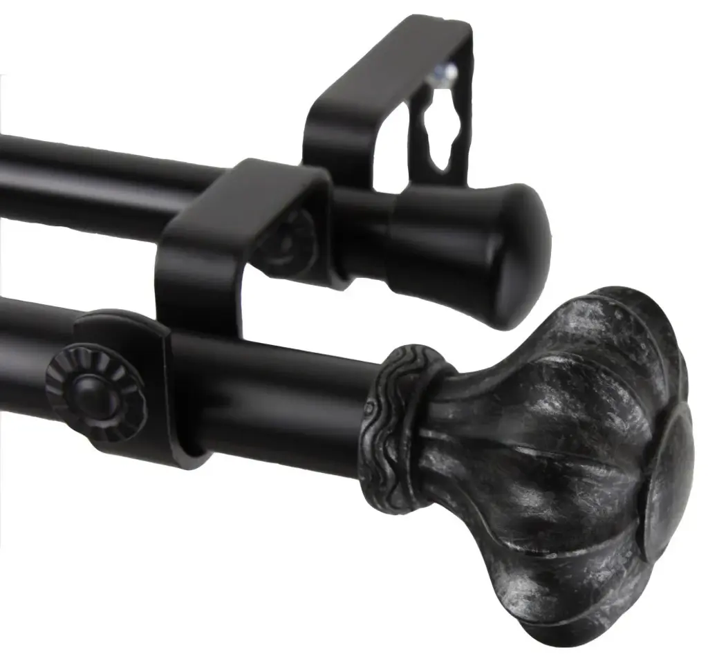 Maurice Double 13/16 Inch Dia. Curtain Rod, Black, 66-120"