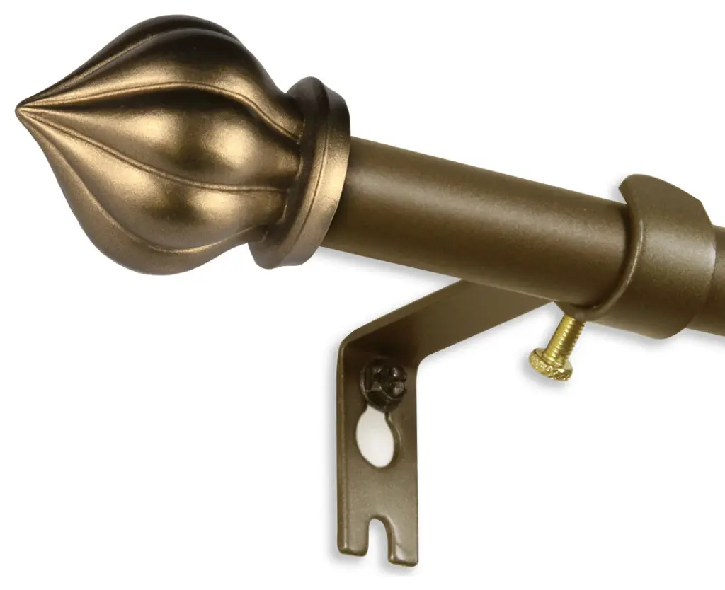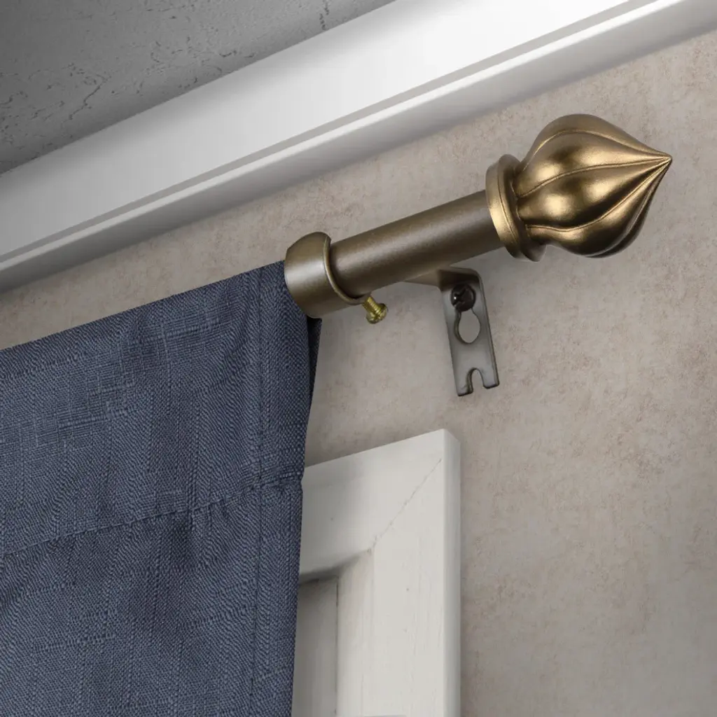 Central Design Products presents the perfect enhancement to your window treatment with high-end quality Single Curtain Rods. Designed to add a modern touch to any window. Includes 1 curtain rod of 5/8" diameter, 3 brackets, and mounting hardware. Projection: 2.75" Rod Diameter: 5/8" Material: Steel Color: Antique Gold