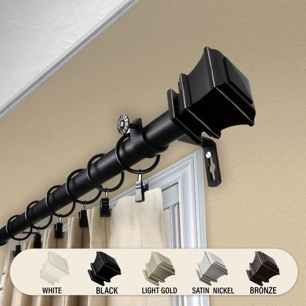 Central Design Products is thrilled to present our top-of-the-line Single Curtain Rods, the ultimate addition to any window treatment. Our high-quality rods are crafted with precision to provide a sleek and modern look to your home decor. Each set includes a single curtain rod, finials, sturdy mounting brackets, and all necessary mounting hardware. The elegant color of our curtain rods adds a touch of sophistication to your space. Upgrade your window treatment with Central Design Products'' Single Curtain Rods today! Includes 1 curtain rod of 1" diameter, finials, mounting brackets, and mounting hardware. Size: 28-48" Projection: 3.625" Rod Diameter: 1" Material: Steel