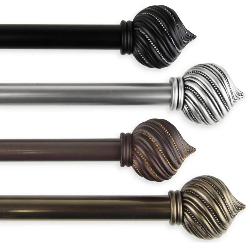 Introduce an elegant touch to your window treatment with this beautiful 13/16" diameter curtain rod set, made of high quality steel rods. Includes telescoping steel pole, mounting hardware, brackets, and 2 finials Projection: 2.875" Finial measurement: 2.5" W x 2" H x 2" D