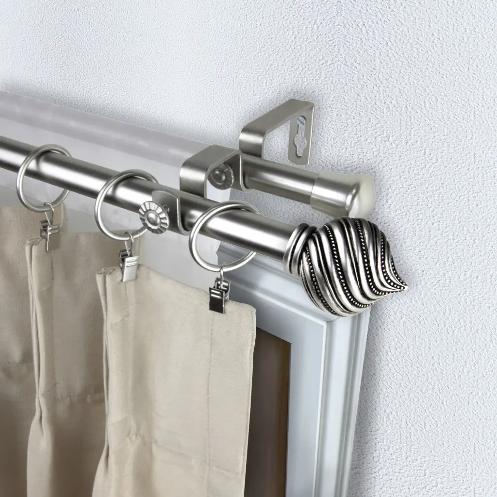 Introduce an elegant touch to your window treatment with this beautiful 13/16" diameter double curtain rod set, made of high quality steel rods. Includes 2 telescoping steel pole, mounting hardware, brackets, and 2 finials Projection: 2.875" Finial measurement: 2.5" W x 2" H x 2" D