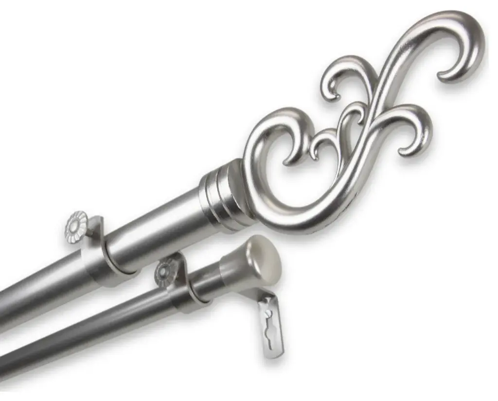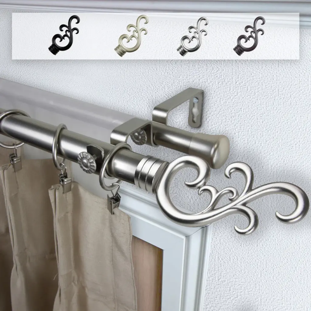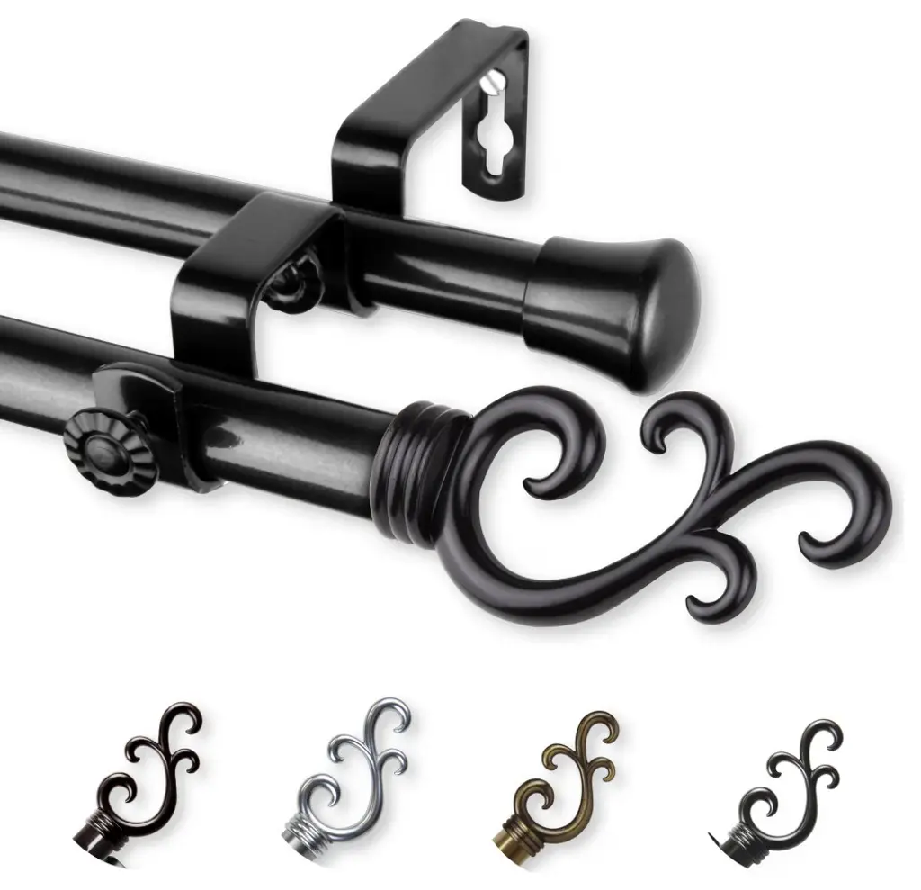 Central Design Products is thrilled to present our top-of-the-line Double Curtain Rods, the ultimate addition to any window treatment. Our high-quality rods are crafted with precision to provide a sleek and modern look to your home decor. Each set includes a double curtain rod, finials, sturdy mounting brackets, and all necessary mounting hardware. The elegant color of our curtain rods adds a touch of sophistication to your space. Upgrade your window treatment with Central Design Products'' Double Curtain Rods today! Includes 1 curtain rod of 1" diameter, one curtain rod of 13/16" diameter, finials, endcaps, mounting brackets, and mounting hardware. Size: 160-240" Projection: 6.75" Front Rod Diameter: 1" / Back Rod Diameter: 13/16" Material: Steel