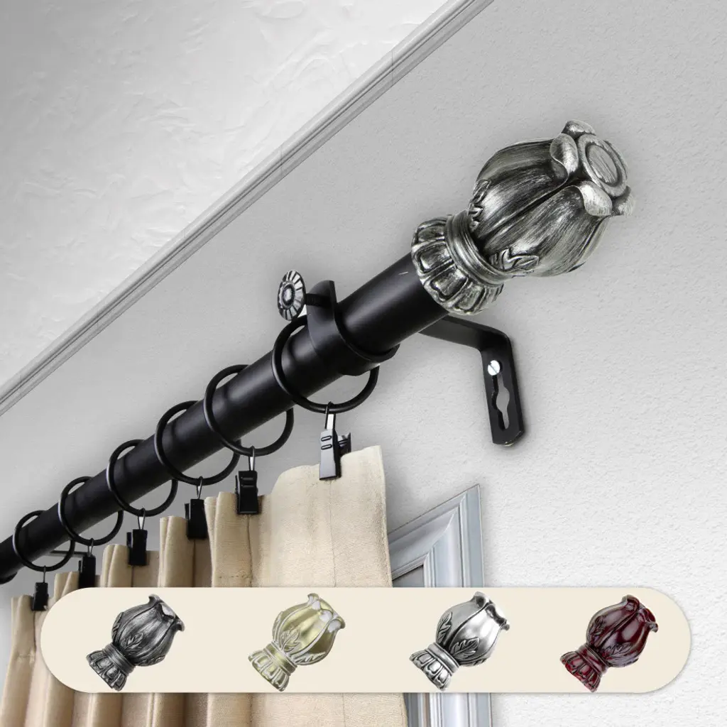 Central Design Products is thrilled to present our top-of-the-line Single Curtain Rods, the ultimate addition to any window treatment. Our high-quality rods are crafted with precision to provide a sleek and modern look to your home decor. Each set includes a single curtain rod, finials, sturdy mounting brackets, and all necessary mounting hardware. The elegant color of our curtain rods adds a touch of sophistication to your space. Upgrade your window treatment with Central Design Products'' Single Curtain Rods today! Includes 1 curtain rod of 1" diameter, finials, mounting brackets, and mounting hardware. Size: 48-84" Projection: 3.625" Rod Diameter: 1" Material: Steel