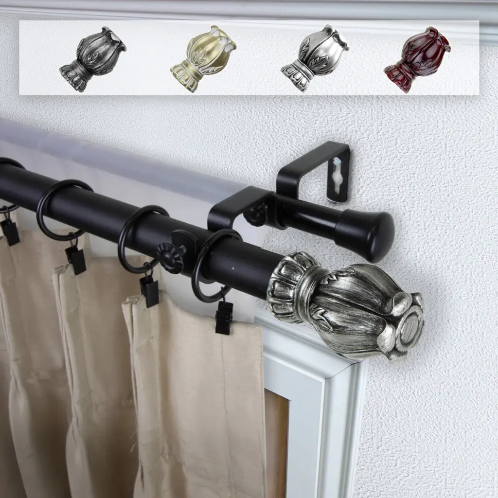 Central Design Products is thrilled to present our top-of-the-line Double Curtain Rods, the ultimate addition to any window treatment. Our high-quality rods are crafted with precision to provide a sleek and modern look to your home decor. Each set includes a double curtain rod, finials, sturdy mounting brackets, and all necessary mounting hardware. The elegant color of our curtain rods adds a touch of sophistication to your space. Upgrade your window treatment with Central Design Products'' Double Curtain Rods today! Includes 1 curtain rod of 1" diameter, one curtain rod of 13/16" diameter, finials, endcaps, mounting brackets, and mounting hardware. Size: 48-84" Projection: 6.75" Front Rod Diameter: 1" / Back Rod Diameter: 13/16" Material: Steel