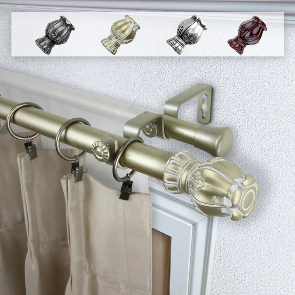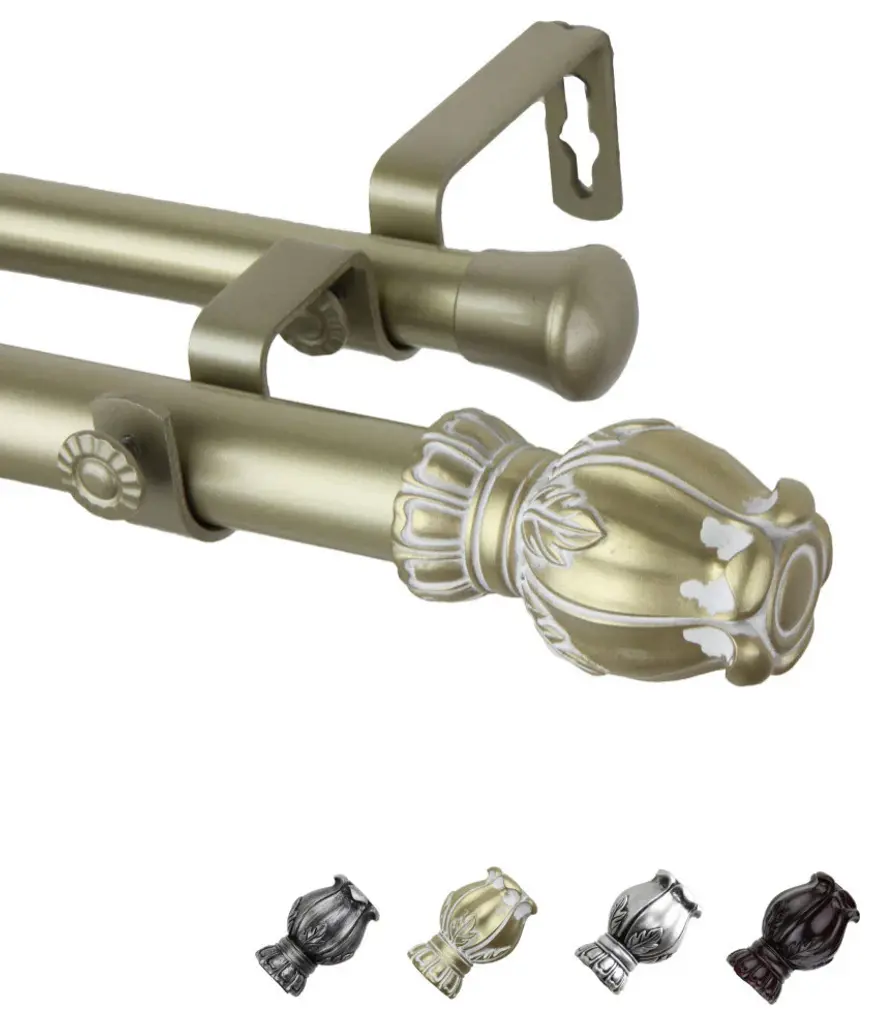 Central Design Products is thrilled to present our top-of-the-line Double Curtain Rods, the ultimate addition to any window treatment. Our high-quality rods are crafted with precision to provide a sleek and modern look to your home decor. Each set includes a double curtain rod, finials, sturdy mounting brackets, and all necessary mounting hardware. The elegant color of our curtain rods adds a touch of sophistication to your space. Upgrade your window treatment with Central Design Products'' Double Curtain Rods today! Includes 1 curtain rod of 1" diameter, one curtain rod of 13/16" diameter, finials, endcaps, mounting brackets, and mounting hardware. Size: 160-240" Projection: 6.75" Front Rod Diameter: 1" / Back Rod Diameter: 13/16" Material: Steel