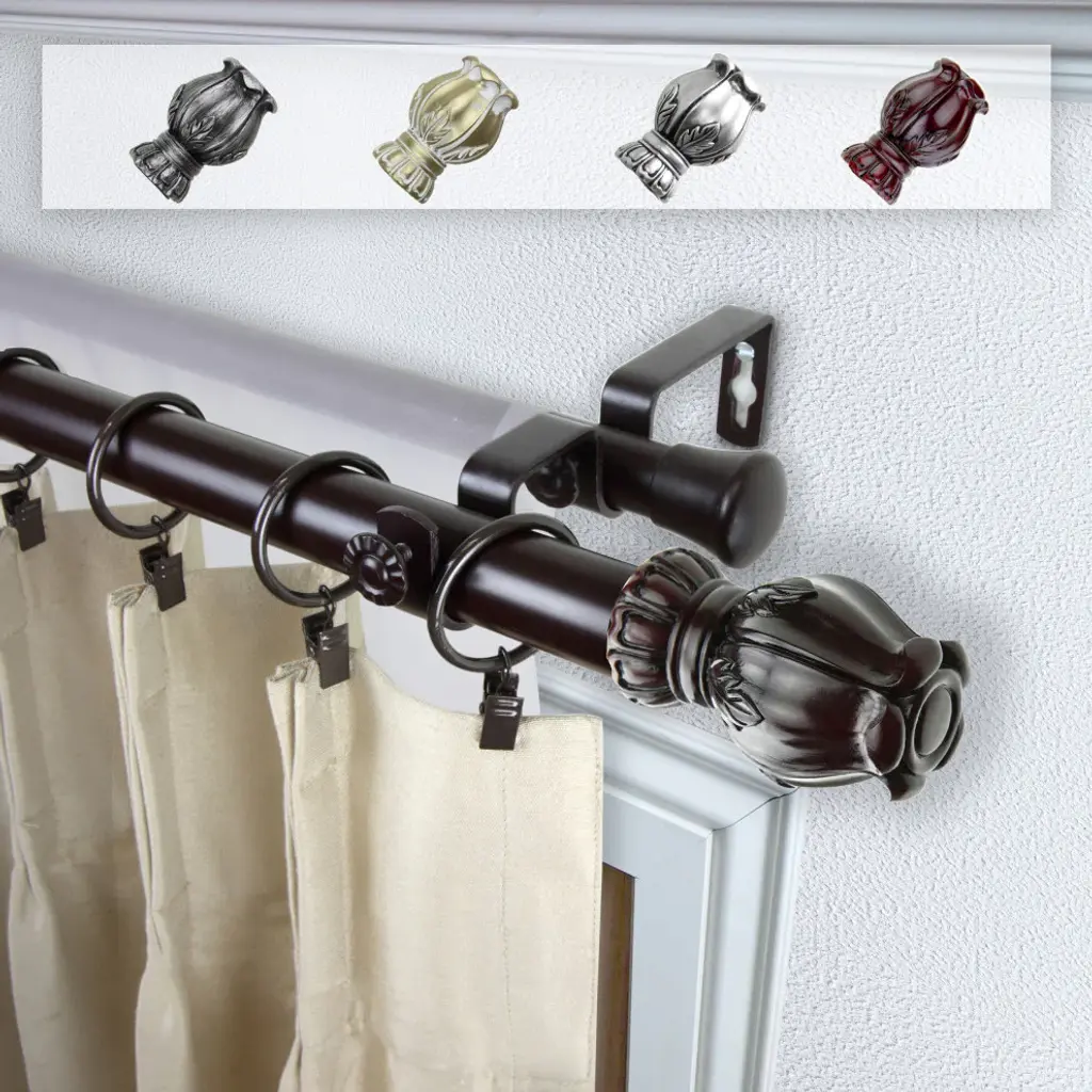 Central Design Products is thrilled to present our top-of-the-line Double Curtain Rods, the ultimate addition to any window treatment. Our high-quality rods are crafted with precision to provide a sleek and modern look to your home decor. Each set includes a double curtain rod, finials, sturdy mounting brackets, and all necessary mounting hardware. The elegant color of our curtain rods adds a touch of sophistication to your space. Upgrade your window treatment with Central Design Products'' Double Curtain Rods today! Includes 1 curtain rod of 1" diameter, one curtain rod of 13/16" diameter, finials, endcaps, mounting brackets, and mounting hardware. Size: 160-240" Projection: 6.75" Front Rod Diameter: 1" / Back Rod Diameter: 13/16" Material: Steel