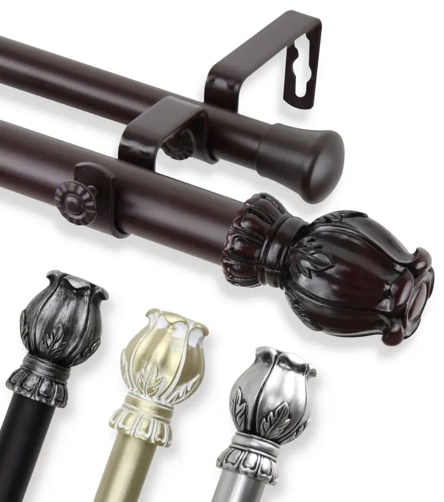 Nichole 1" Double Curtain Rod, Mahogany, 160-240"