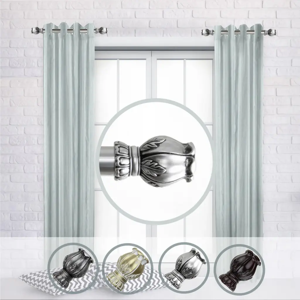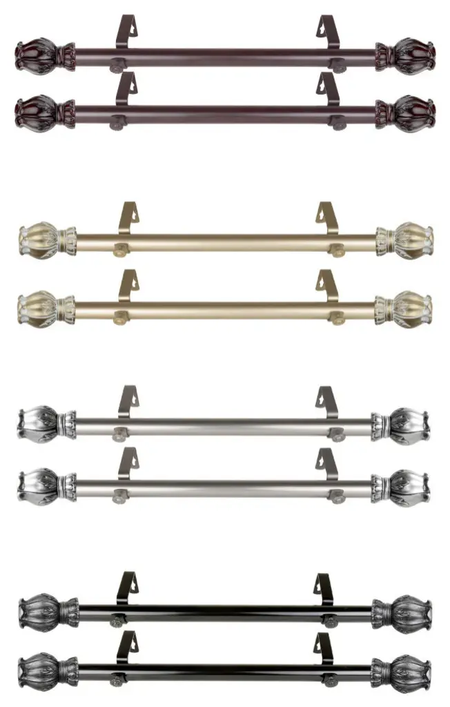 Central Design Products is thrilled to present our side curtain rods, which will add alluring style and refined touch to your window treatment and home decor. Add a nice touch to each side of your beautiful window to apply a modern and unique look in your living space. Includes two 1" diameter telescoping rods, four finials, four side mount brackets and mounting hardware. Size: 12-20" Projection: 3.625" Steel Rod