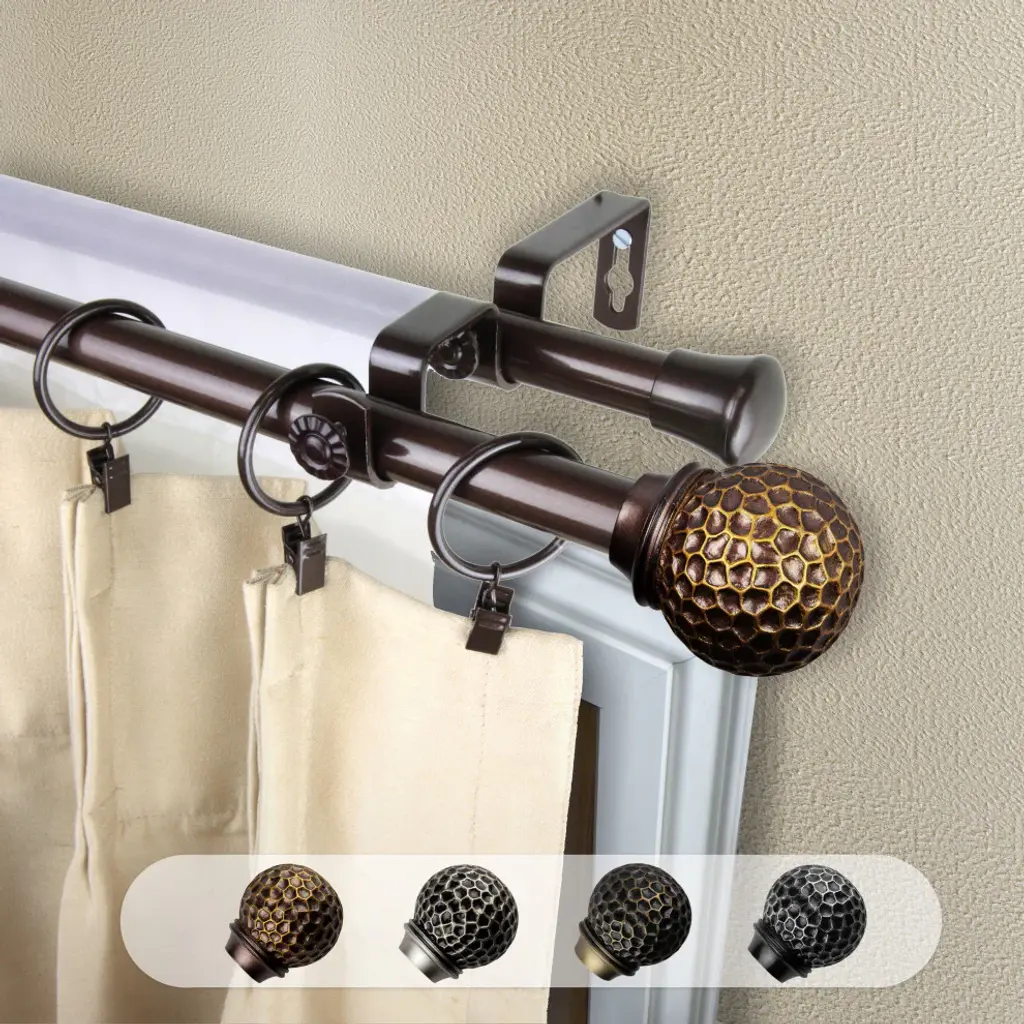 Central Design Products presents the perfect enhancement to your window treatment with high-end quality Double Curtain Rods. Designed to add a modern touch to any window. Includes 2 curtain rods of 13/16" diameter, 2 brackets, and mounting hardware. Projection: 6.375" Front rod to wall, 3.75" Back rod to wall Rod Diameter: 13/16" Material: Steel Color: Cocoa