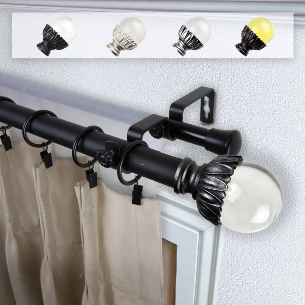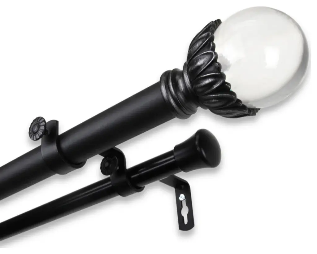 Central Design Products is thrilled to present our top-of-the-line Double Curtain Rods, the ultimate addition to any window treatment. Our high-quality rods are crafted with precision to provide a sleek and modern look to your home decor. Each set includes a double curtain rod, finials, sturdy mounting brackets, and all necessary mounting hardware. The elegant color of our curtain rods adds a touch of sophistication to your space. Upgrade your window treatment with Central Design Products'' Double Curtain Rods today! Includes 1 curtain rod of 1" diameter, one curtain rod of 13/16" diameter, finials, endcaps, mounting brackets, and mounting hardware. Size: 160-240" Projection: 6.75" Front Rod Diameter: 1" / Back Rod Diameter: 13/16" Material: Steel