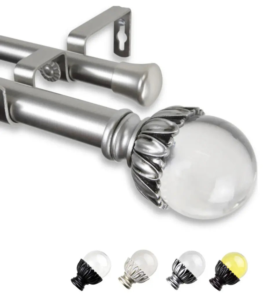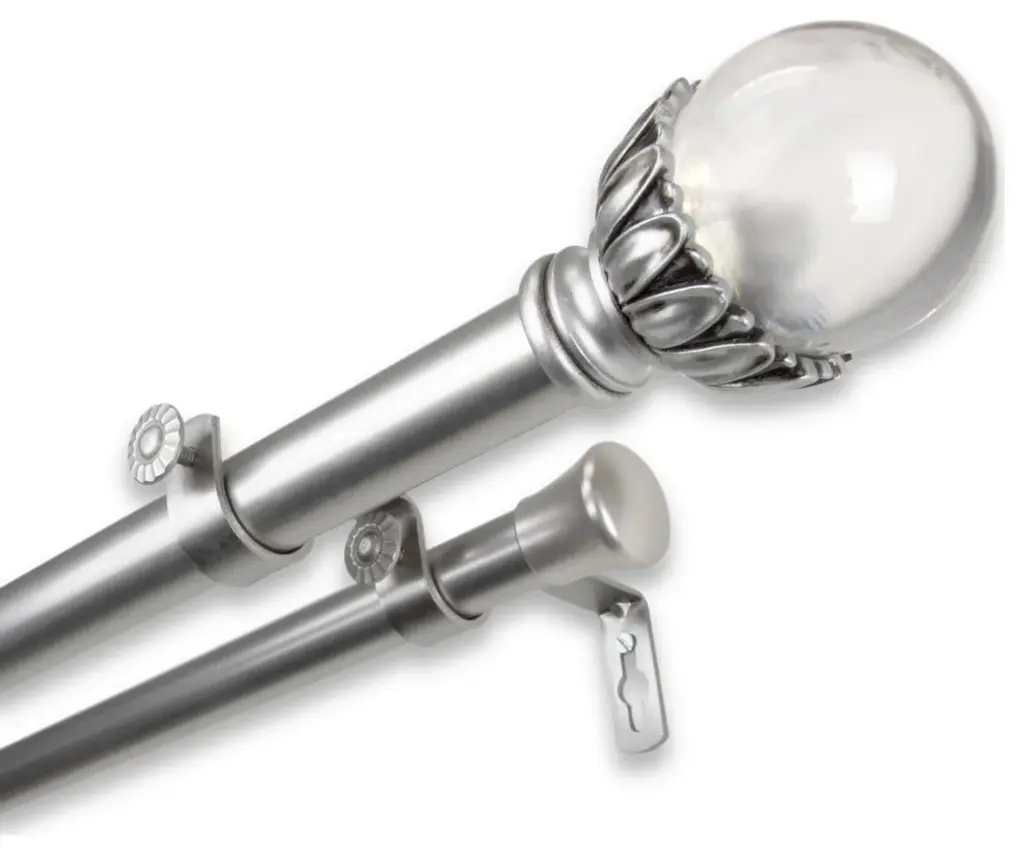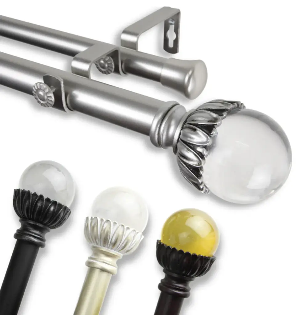 Central Design Products is thrilled to present our top-of-the-line Double Curtain Rods, the ultimate addition to any window treatment. Our high-quality rods are crafted with precision to provide a sleek and modern look to your home decor. Each set includes a double curtain rod, finials, sturdy mounting brackets, and all necessary mounting hardware. The elegant color of our curtain rods adds a touch of sophistication to your space. Upgrade your window treatment with Central Design Products'' Double Curtain Rods today! Includes 1 curtain rod of 1" diameter, one curtain rod of 13/16" diameter, finials, endcaps, mounting brackets, and mounting hardware. Size: 120-170" Projection: 6.75" Front Rod Diameter: 1" / Back Rod Diameter: 13/16" Material: Steel