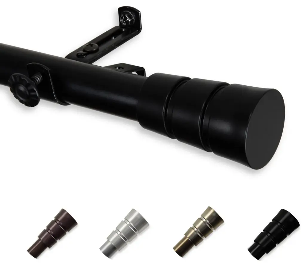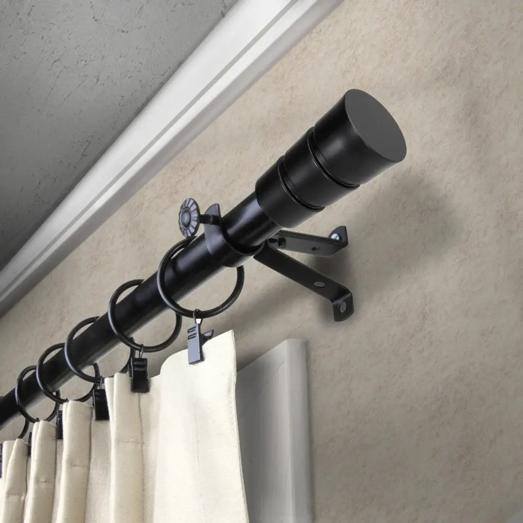 Introduce an elegant touch to your window treatment with this beautiful 13/16" diameter curtain rod set, made of high quality steel rods. Includes telescoping steel pole, mounting hardware, brackets, and 2 finials Projection: 2.875" Finial measurement: 2.25" W x 1.25" H x 1.25" D