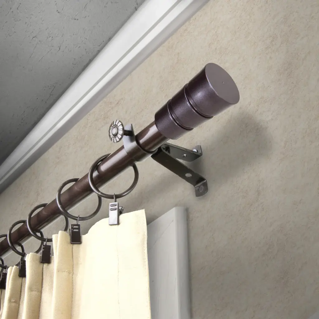 Introduce an elegant touch to your window treatment with this beautiful 13/16" diameter curtain rod set, made of high quality steel rods. Includes telescoping steel pole, mounting hardware, brackets, and 2 finials Projection: 2.875" Finial measurement: 2.25" W x 1.25" H x 1.25" D