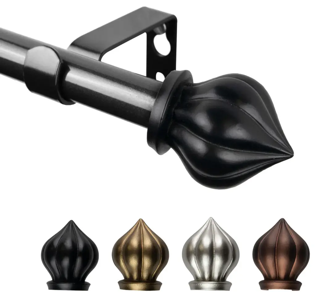 Central Design Products is thrilled to present our top-of-the-line Single Curtain Rods, the ultimate addition to any window treatment. Our high-quality rods are crafted with precision to provide a sleek and modern look to your home decor. Each set includes one 5/8" diameter curtain rod, sturdy mounting brackets, and all necessary mounting hardware. With a projection of 2.75" and a rod diameter of 5/8", our steel rods are built to last. The elegant color of our curtain rods adds a touch of sophistication to your space. Upgrade your window treatment with Central Design Products'' Single Curtain Rods today! Includes 1 curtain rod of 5/8" diameter, finials, mounting brackets, and mounting hardware. Size: 28-48" Projection: 2.75" Rod Diameter: 5/8" Material: Steel Color: Black