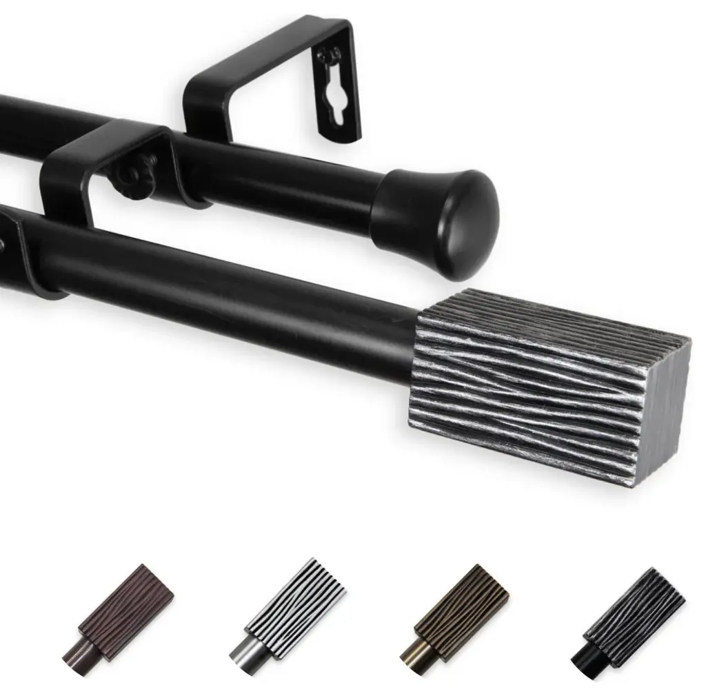 Nona 5/8" Curtain Rod, Black, 28-48"
