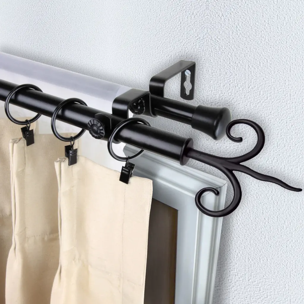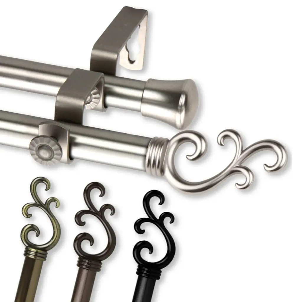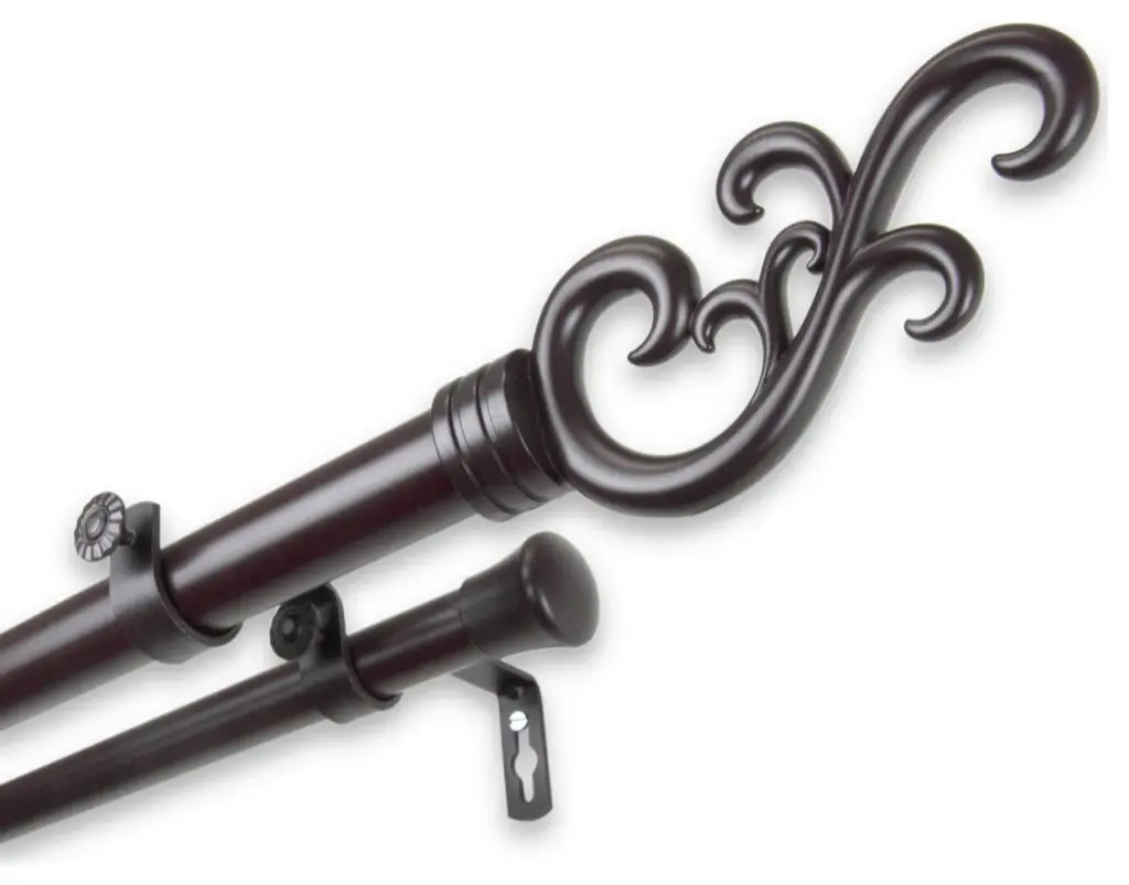 Introduce an elegant touch to your window treatment with this beautiful 13/16" diameter double curtain rod set, made of high quality steel rods. Includes 2 telescoping steel pole, mounting hardware, brackets, and 2 finials Projection: 2.875" Finial measurement: 4.375" W x 3.875" H x .188" D
