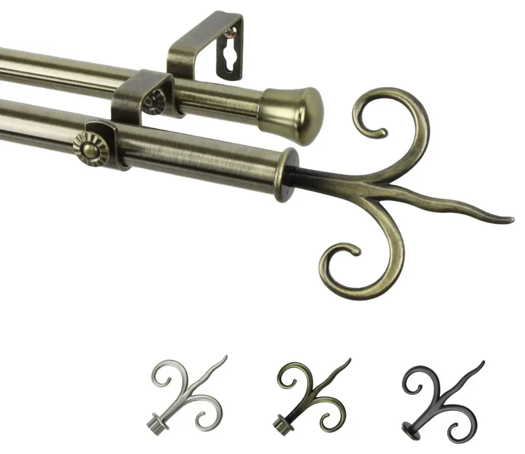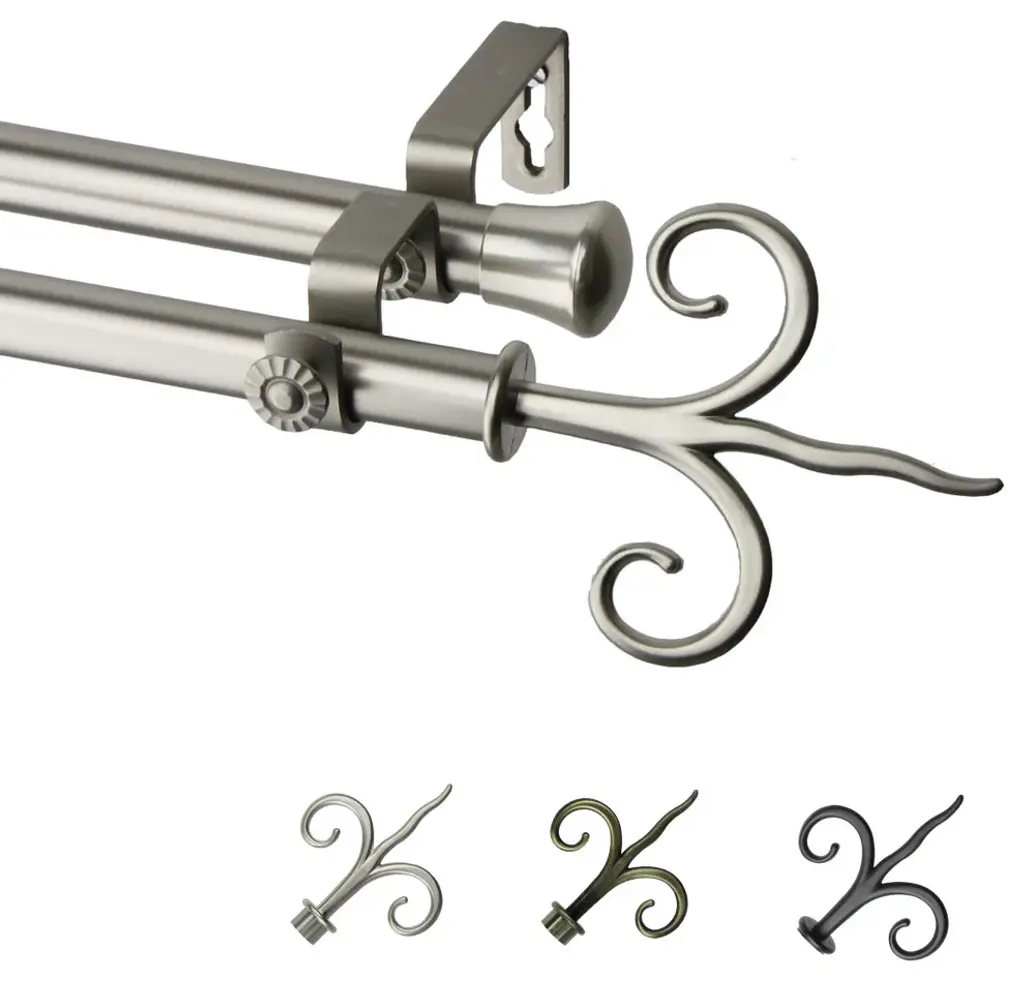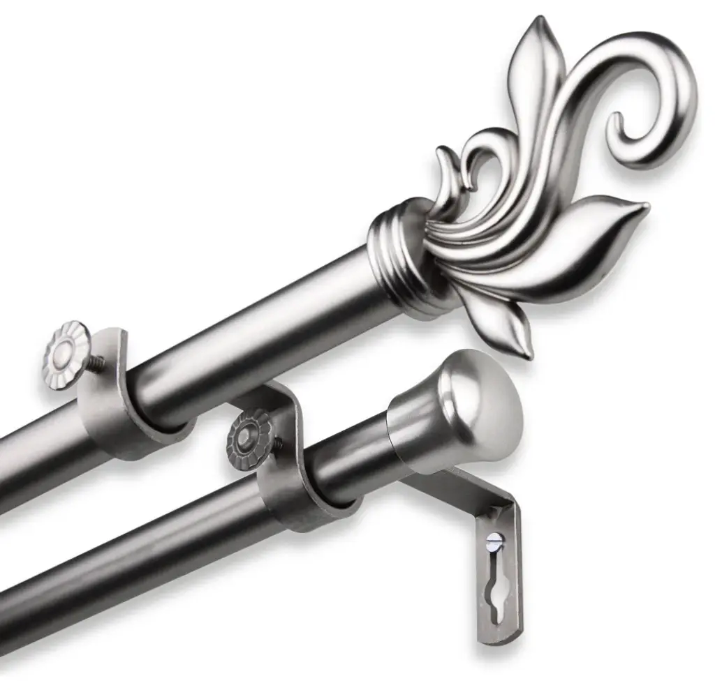 Introduce an elegant touch to your window treatment with this beautiful 13/16" diameter double curtain rod set, made of high quality steel rods. Includes 2 telescoping steel pole, mounting hardware, brackets, and 2 finials Projection: 2.875" Finial measurement: 4.375" W x 3.875" H x .188" D
