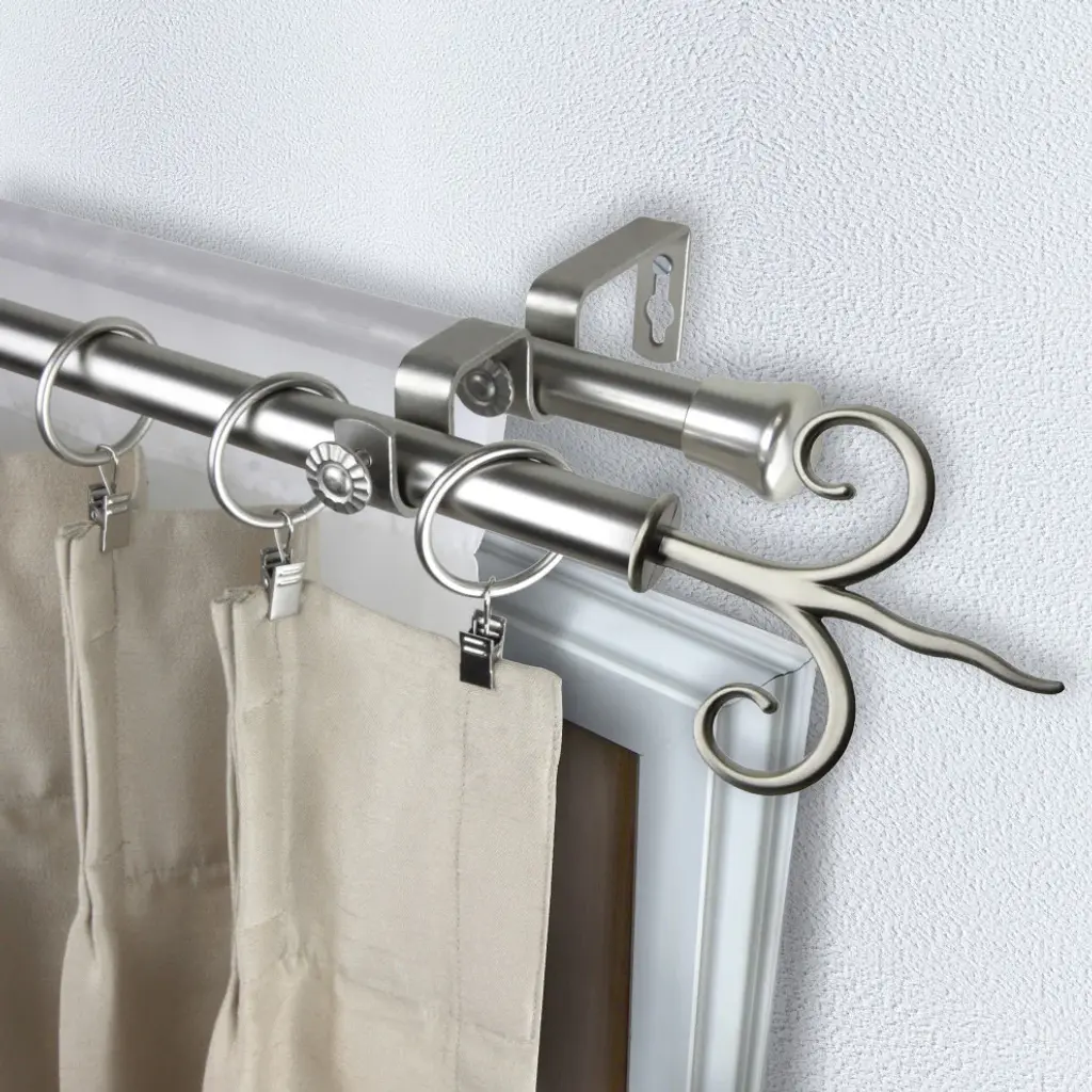 Introduce an elegant touch to your window treatment with this beautiful 13/16" diameter double curtain rod set, made of high quality steel rods. Includes 2 telescoping steel pole, mounting hardware, brackets, and 2 finials Projection: 2.875" Finial measurement: 4.375" W x 3.875" H x .188" D