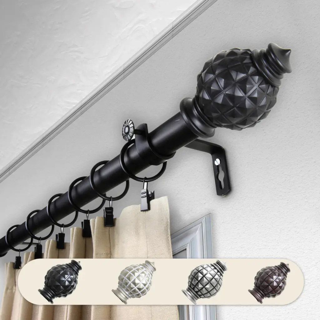 Central Design Products is thrilled to present our top-of-the-line Single Curtain Rods, the ultimate addition to any window treatment. Our high-quality rods are crafted with precision to provide a sleek and modern look to your home decor. Each set includes a single curtain rod, finials, sturdy mounting brackets, and all necessary mounting hardware. The elegant color of our curtain rods adds a touch of sophistication to your space. Upgrade your window treatment with Central Design Products'' Single Curtain Rods today! Includes 1 curtain rod of 1" diameter, finials, mounting brackets, and mounting hardware. Size: 66-120" Projection: 3.625" Rod Diameter: 1" Material: Steel