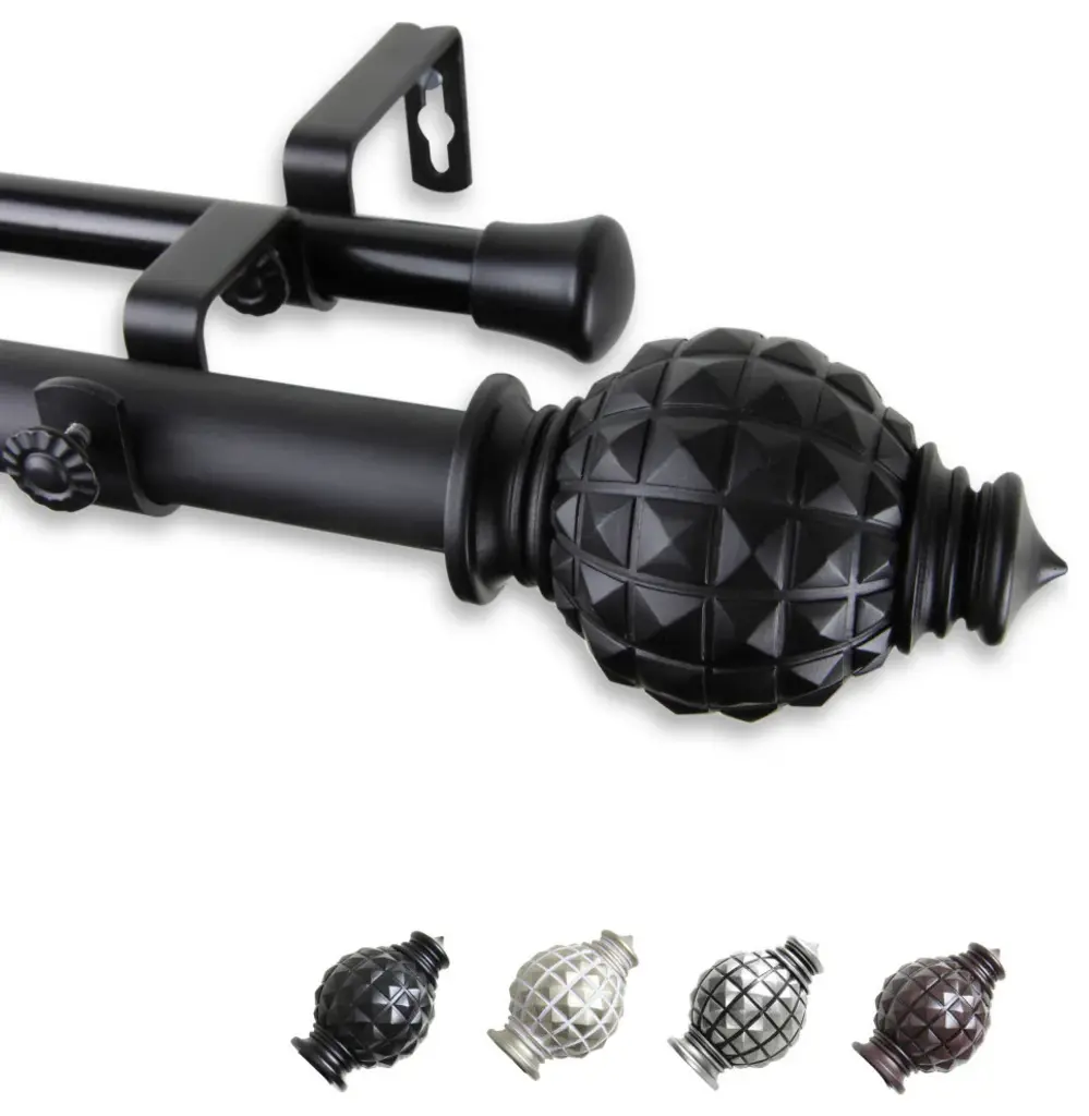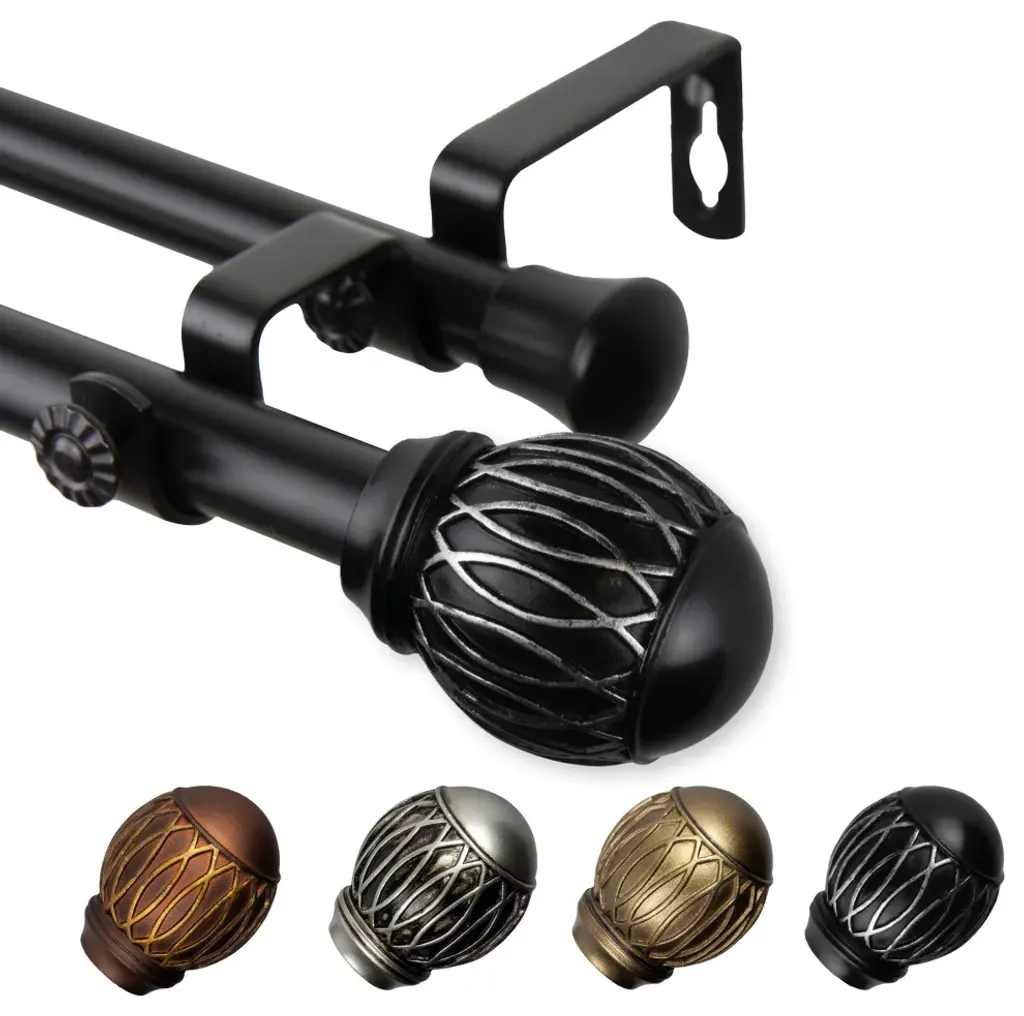 Central Design Products is thrilled to present our top-of-the-line Double Curtain Rods, the ultimate addition to any window treatment. Our high-quality rods are crafted with precision to provide a sleek and modern look to your home decor. Each set includes a double curtain rod, finials, sturdy mounting brackets, and all necessary mounting hardware. The elegant color of our curtain rods adds a touch of sophistication to your space. Upgrade your window treatment with Central Design Products'' Double Curtain Rods today! Includes 1 curtain rod of 1" diameter, one curtain rod of 13/16" diameter, finials, endcaps, mounting brackets, and mounting hardware. Size: 48-84" Projection: 6.75" Front Rod Diameter: 1" / Back Rod Diameter: 13/16" Material: Steel