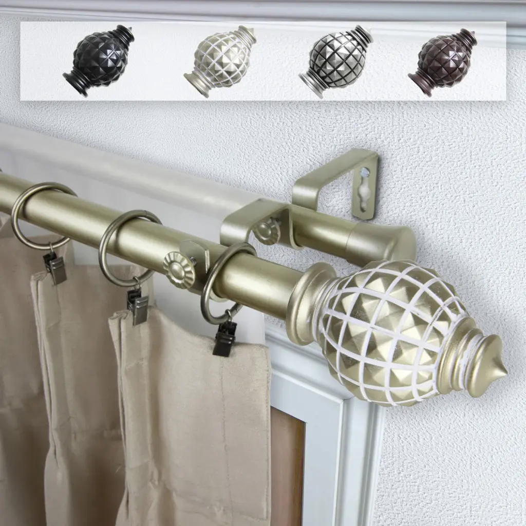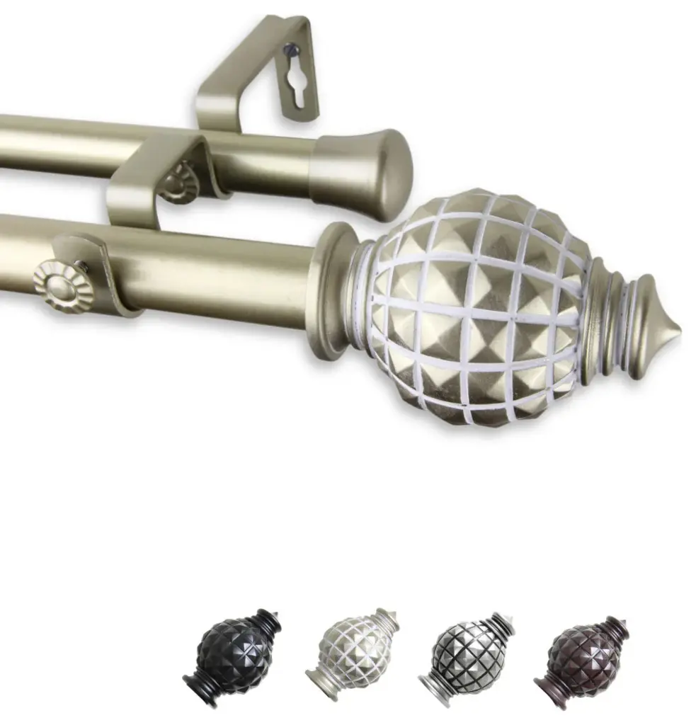 Central Design Products is thrilled to present our top-of-the-line Double Curtain Rods, the ultimate addition to any window treatment. Our high-quality rods are crafted with precision to provide a sleek and modern look to your home decor. Each set includes a double curtain rod, finials, sturdy mounting brackets, and all necessary mounting hardware. The elegant color of our curtain rods adds a touch of sophistication to your space. Upgrade your window treatment with Central Design Products'' Double Curtain Rods today! Includes 1 curtain rod of 1" diameter, one curtain rod of 13/16" diameter, finials, endcaps, mounting brackets, and mounting hardware. Size: 48-84" Projection: 6.75" Front Rod Diameter: 1" / Back Rod Diameter: 13/16" Material: Steel