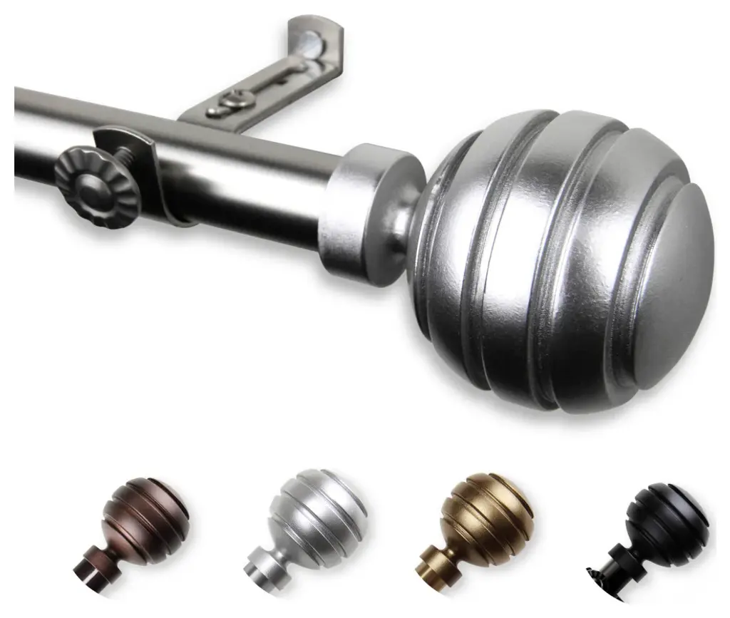 Olga Curtain Rod 3/4 inch dia. 28-48" - Satin NickelCompliment your room with 13/16 inch adjustable single rod with elegant finial design and highest quality drapery hardware with variety of color length options. Matching double rods, triple rods and holdback pairs are available and sold separately.Includes one 13/16 in. dia. single rod, 2 brackets and mounting hardwareRod projection: 2.875 in.Steel rod and resin finialRod diameter: 13/16"Finial measurement: 2-3/4"W x 2-1/8"H x 2-1/8"DRod length: 28-48 dia.Color: Satin NickelGrouped by Length: 28-48 inchGrouped by Colour: Satin Nickel