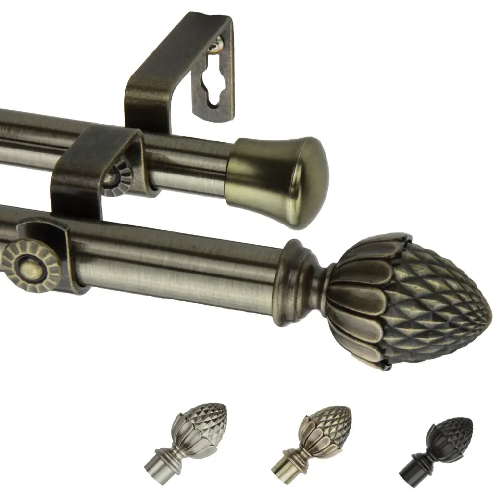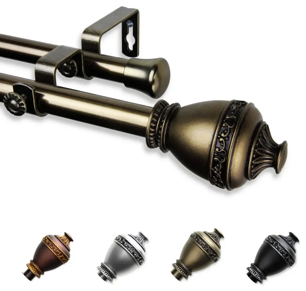 Introduce an elegant touch to your window treatment with this beautiful 13/16" diameter double curtain rod set, made of high quality steel rods. Includes 2 telescoping steel pole, mounting hardware, brackets, and 2 finials Projection: 2.875" Finial measurement: 2.5" W x 1.625" H x 1.625" D