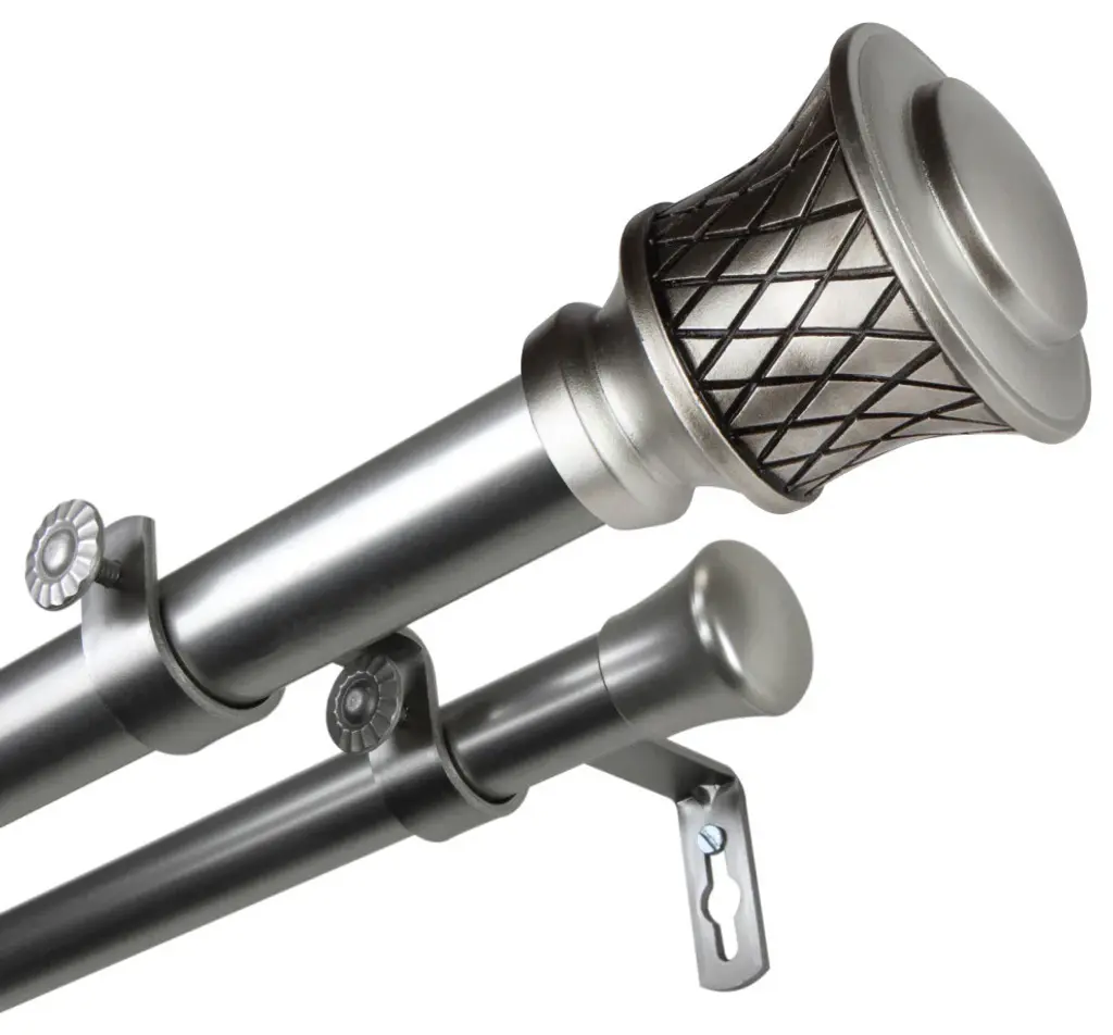 Introduce an elegant touch to your window treatment with this beautiful 13/16" diameter double curtain rod set, made of high quality steel rods. Includes 2 telescoping steel pole, mounting hardware, brackets, and 2 finials Projection: 2.875" Finial measurement: 2.5" W x 1.625" H x 1.625" D