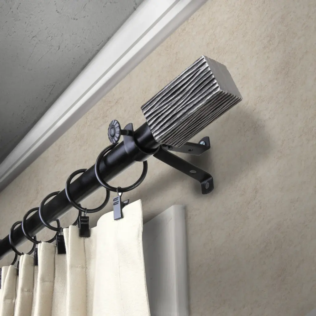 Introduce an elegant touch to your window treatment with this beautiful 13/16" diameter curtain rod set, made of high quality steel rods. Includes telescoping steel pole, mounting hardware, brackets, and 2 finials Projection: 2.875" Finial measurement: 2.25" W x 1.125" H x 1.125" D