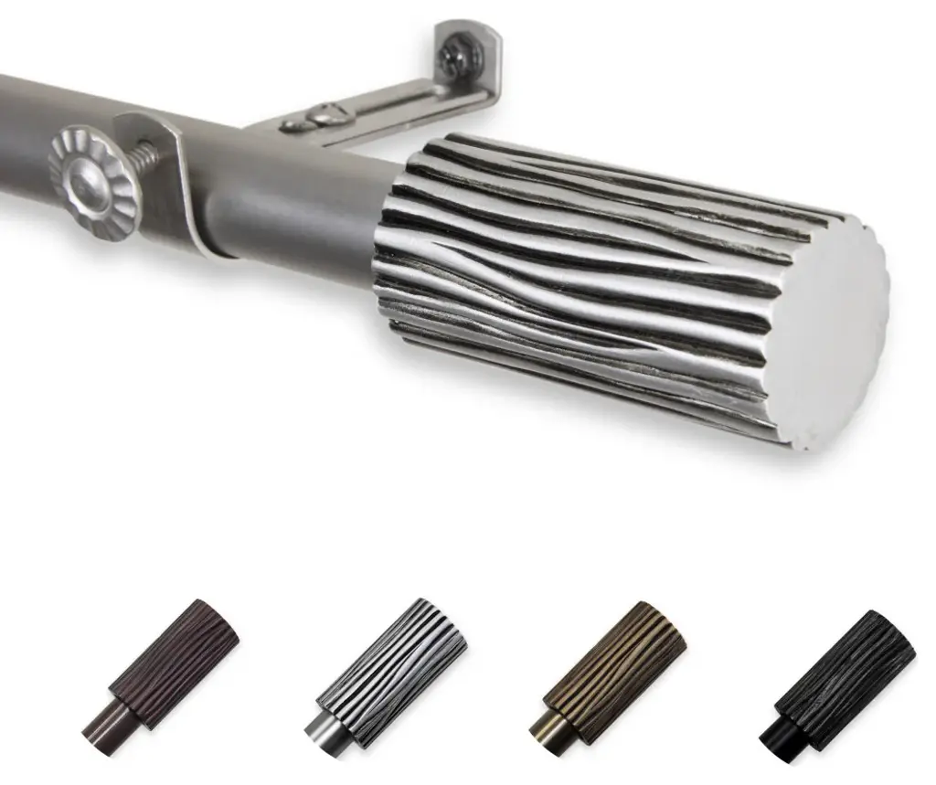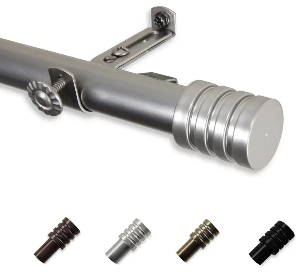 Introduce an elegant touch to your window treatment with this beautiful 13/16" diameter curtain rod set, made of high quality steel rods. Includes telescoping steel pole, mounting hardware, brackets, and 2 finials Projection: 2.875" Finial measurement: 2.25" W x 1.125" H x 1.125" D