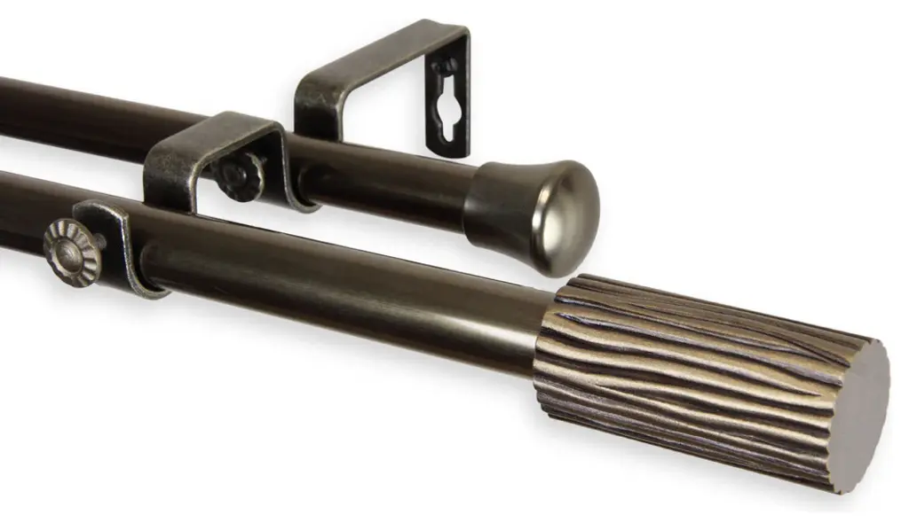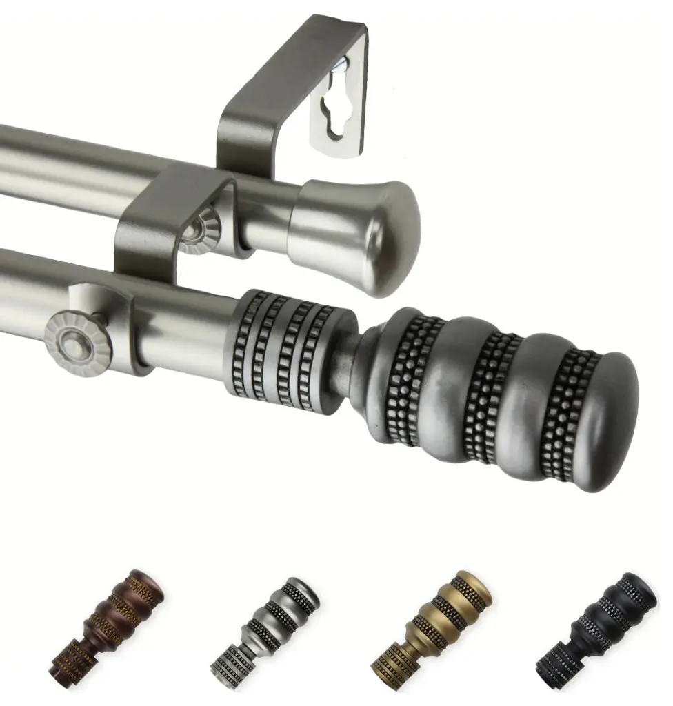 Introduce an elegant touch to your window treatment with this beautiful 13/16" diameter double curtain rod set, made of high quality steel rods. Includes 2 telescoping steel pole, mounting hardware, brackets, and 2 finials Projection: 2.875" Finial measurement: 2.25" W x 1.125" H x 1.125" D