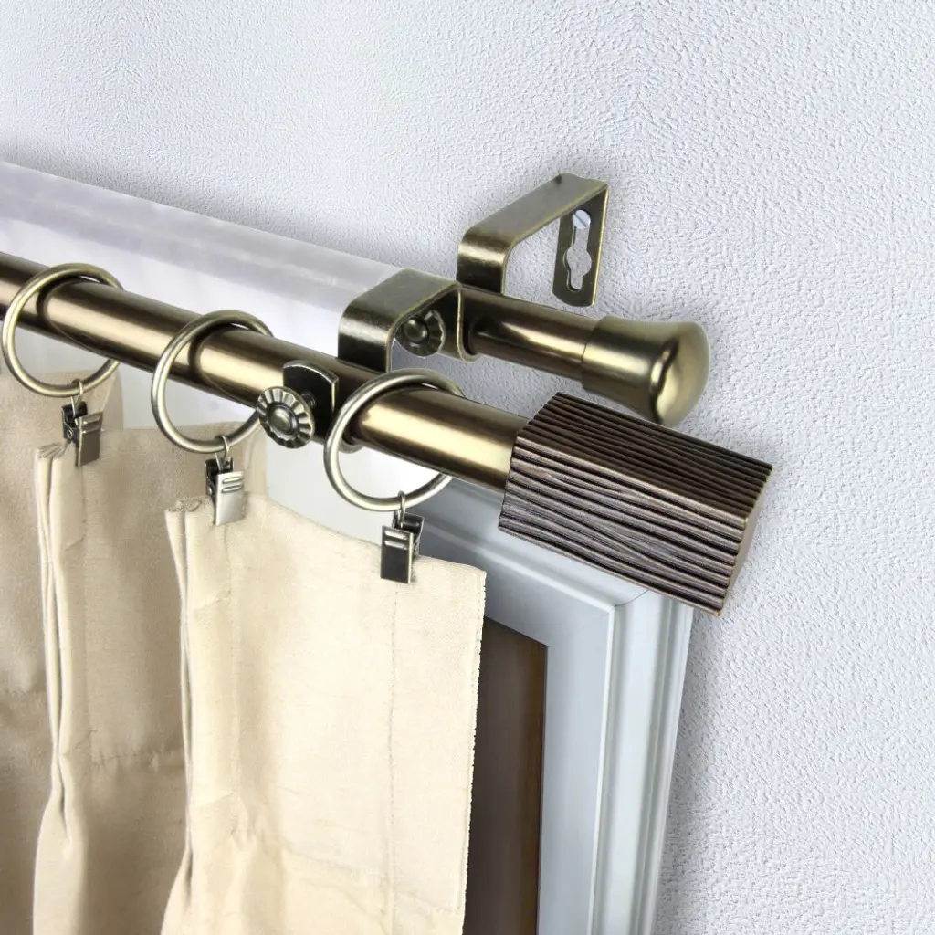 Introduce an elegant touch to your window treatment with this beautiful 13/16" diameter double curtain rod set, made of high quality steel rods. Includes 2 telescoping steel pole, mounting hardware, brackets, and 2 finials Projection: 2.875" Finial measurement: 2.25" W x 1.125" H x 1.125" D