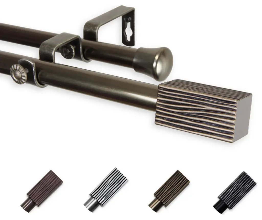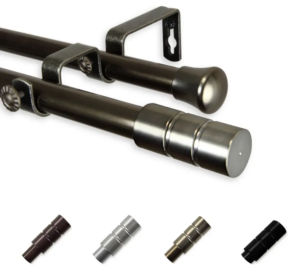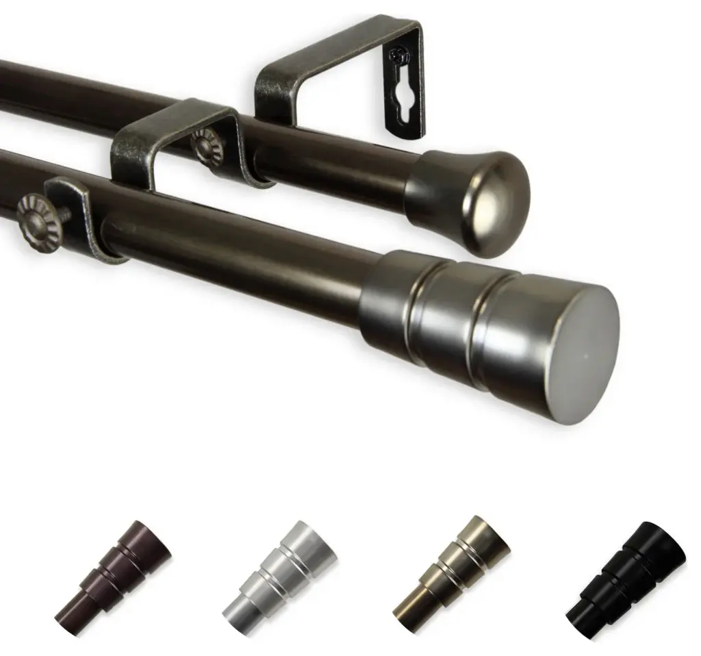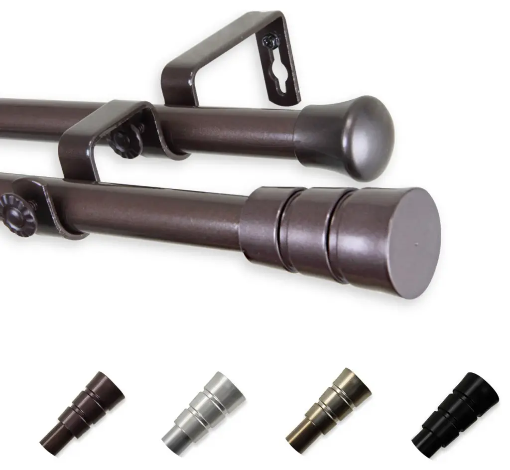 Introduce an elegant touch to your window treatment with this beautiful 13/16" diameter double curtain rod set, made of high quality steel rods. Includes 2 telescoping steel pole, mounting hardware, brackets, and 2 finials Projection: 2.875" Finial measurement: 2.25" W x 1.125" H x 1.125" D