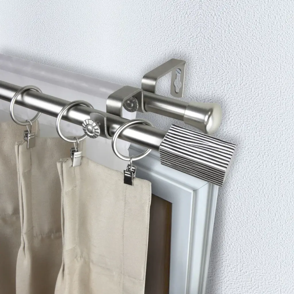 Introduce an elegant touch to your window treatment with this beautiful 13/16" diameter double curtain rod set, made of high quality steel rods. Includes 2 telescoping steel pole, mounting hardware, brackets, and 2 finials Projection: 2.875" Finial measurement: 2.25" W x 1.125" H x 1.125" D