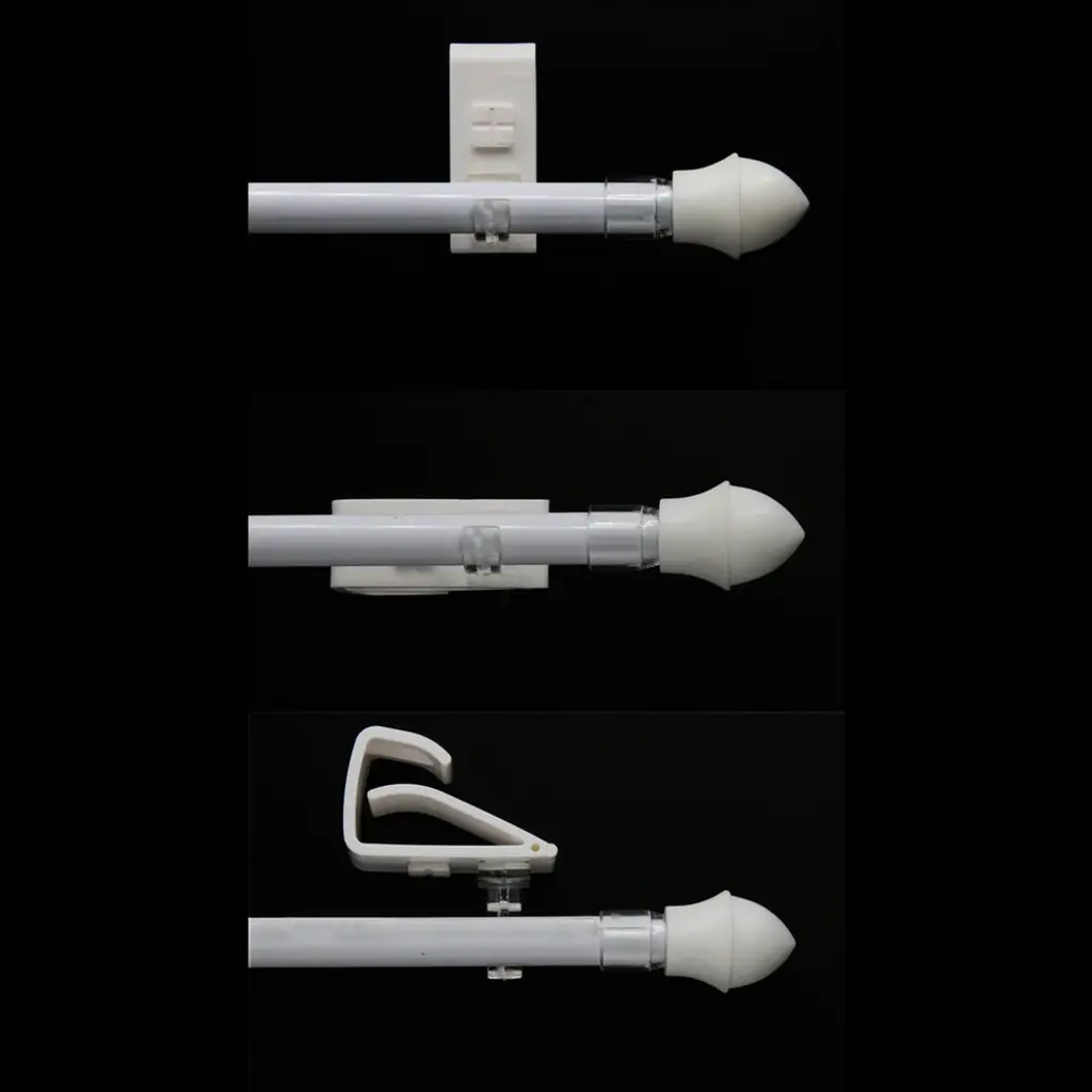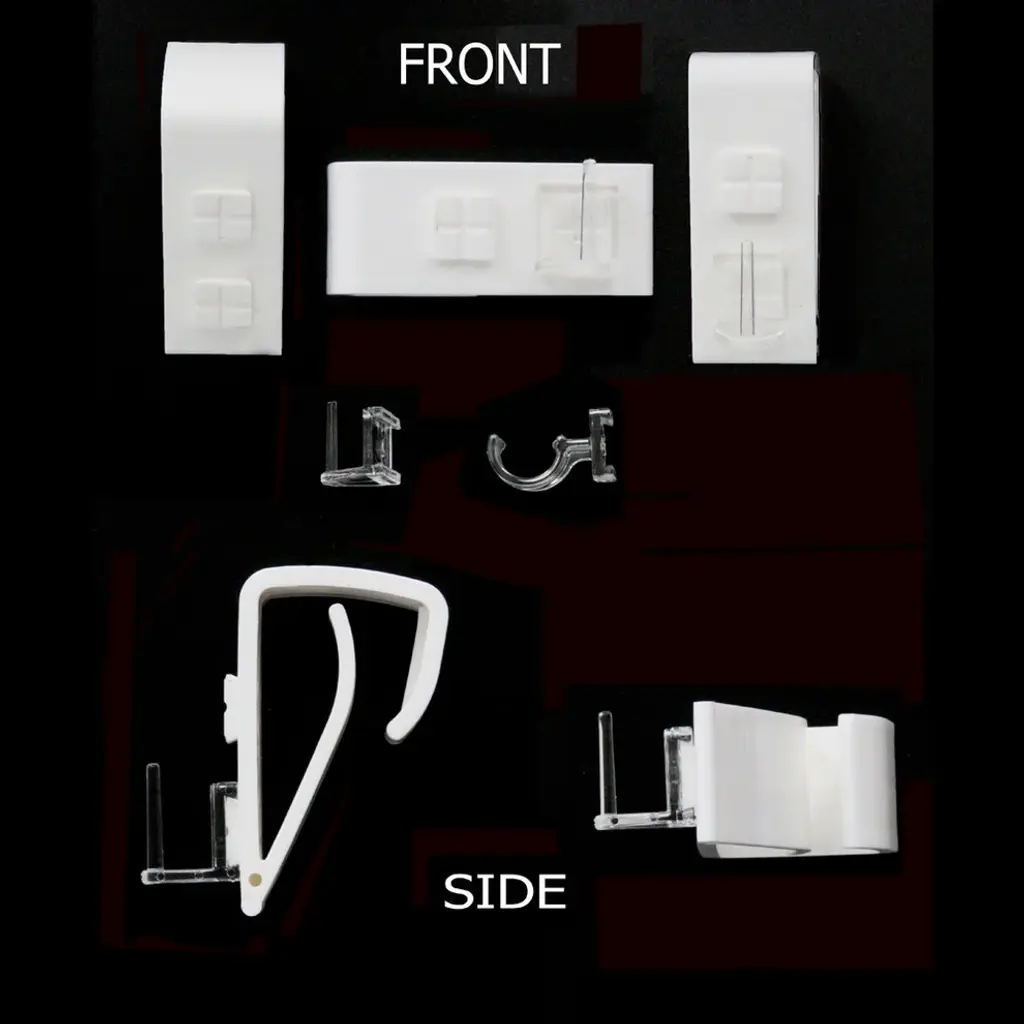 • OVER THE WINDOW BRACKET : With an opening of 3/8 inch, you just have to insert the white over the door bracket on the top of your window frame and then to slide on it one of the two clip-on hooks supplied• CHOICE OF CLIP-ON HOOKS : This set features a choice of two pairs of clip-on-hooks, one pair for flat sash rods and the other pair for café curtain rod diameter 1/2 inch (sold separately)• VERSATILE : The white bracket can also be fixed on each side if you have a one window sash. 2 different heights available when installing your clip-on hooks on the support to easily the height of your sash rod• NO TOOLS NEEDED : No tools, no screws, glue or holes, no damage to walls, doors or windows. You don''t need to drill or damage your window frame anymore• MULTI-SUPPORT : These plastic curtain brackets are suitable for all types of PVC, aluminum and wooden windows and compatible with all our small curtain rodsThis set of two over the window curtain rod brackets is entirely appropriate to hold your net curtain rods safely. With an opening of 3/8 inch, you just have to insert the white over the door bracket on the top of your window frame and then to slide on it one of the two clip-on hooks supplied. This set features a choice of two pairs of clip-on-hooks, one pair for flat sash rods and the other pair for café curtain rod diameter 1/2 inch. The white bracket can also be fixed on each side if you have a one window sash. You don''t need to drill or damage your window frame anymore. Plus, you have a choice of two different heights when installing your clip-on hooks on the support, like this you can change easily the height of your sash rod. These plastic curtain brackets are suitable for all types of PVC, aluminum and wooden windows and compatible with all our small curtain rods. Imported from France and made in PRC. Color : white brackets and clear cliip-on hooks, dimensins of 2 H x 0.12 W x 1.4 D inches, sold by set of two brackets + two pairs of two clip-on hooks. Curtain rod brackets are good for hanging curtains, valances, nets, tiers or sheers.