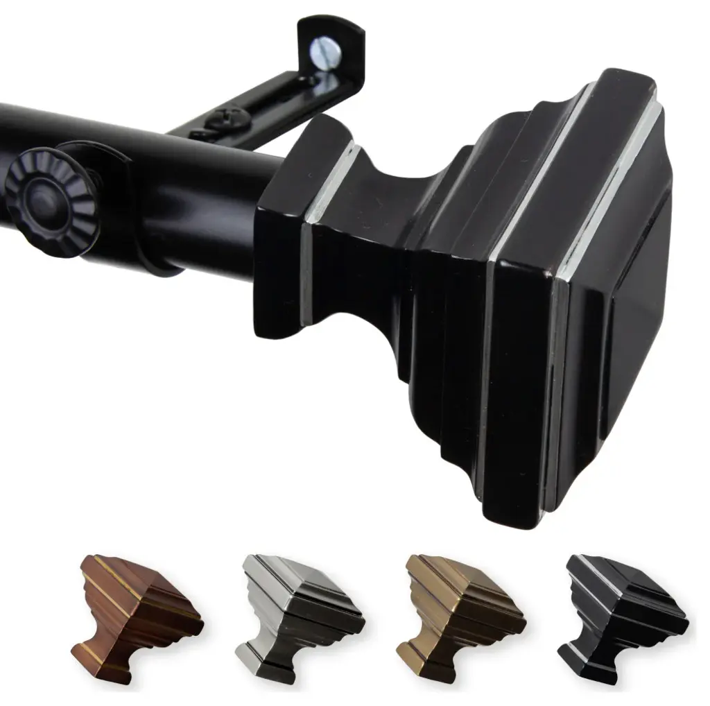 Central Design Products presents the perfect enhancement to your window treatment with high end quality Non-Telescoping Rods. Effortlessly slide your curtain drapery open and closed on these modern styled Custom Cut rods. Designed to add elegance in the form of one continuous rod up to 24 feet. Includes 1 continous rod of 1.5" diameter, 1 pair of finials, mounting brackets and hardware. Projection: 4.5" Rod Diameter: 1.5" Material: Steel Rod/Resin Finials Color: Black