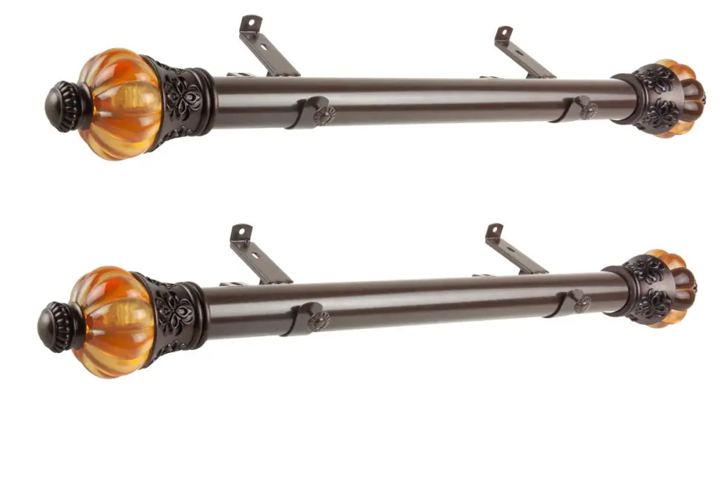 This side mount curtain rod will add alluring style and refined touch to your window treatment and home decor.Includes two 1.5" diameter telescoping 12-20 inches rod, four finials, four side mount brackets and mounting hardware.Finial measurement: 4-5/8" W x 3-1/2" H x 3-1/2" D.Bracket Projection: 4.5 inches.Installation instructions included.Steel Rod and Resin Finials