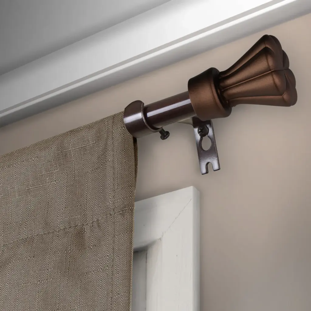 Central Design Products presents the perfect enhancement to your window treatment with high-end quality 5/8" Curtain Rods, Pasha edition. Effortlessly style your window treatment with these Curtain Rods. Designed to add a modern touch to your window decor. Includes 1 curtain rod of 5/8" diameter, 4 support brackets, 2 finials, and mounting hardware. Rod Size: 84-120" Projection: 2.75" Clearance: 2" Material: Steel Color: Cocoa More color and sizes available, sold separately.