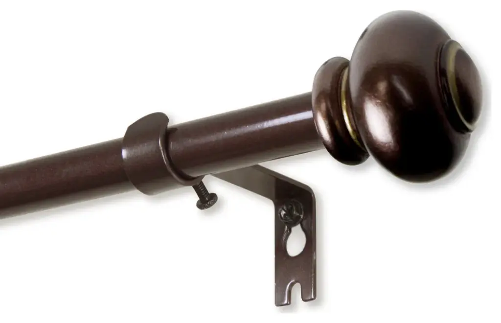 Product Details:Includes 7/16" diameter rod, 2 brackets and mounting hardwareRod Projection: 1.25"Finial measures: 1.25" x 1" x 1.25"High quality adjustable steel rod in cocoa extends from 18" to 28"