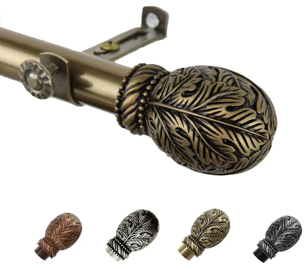 Introduce an elegant touch to your window treatment with this beautiful 13/16" diameter curtain rod set, made of high quality steel rods. Includes telescoping steel pole, mounting hardware, brackets, and 2 finials Projection: 2.875" Finial measurement: 4" W x 1.5" H x 1.5" D