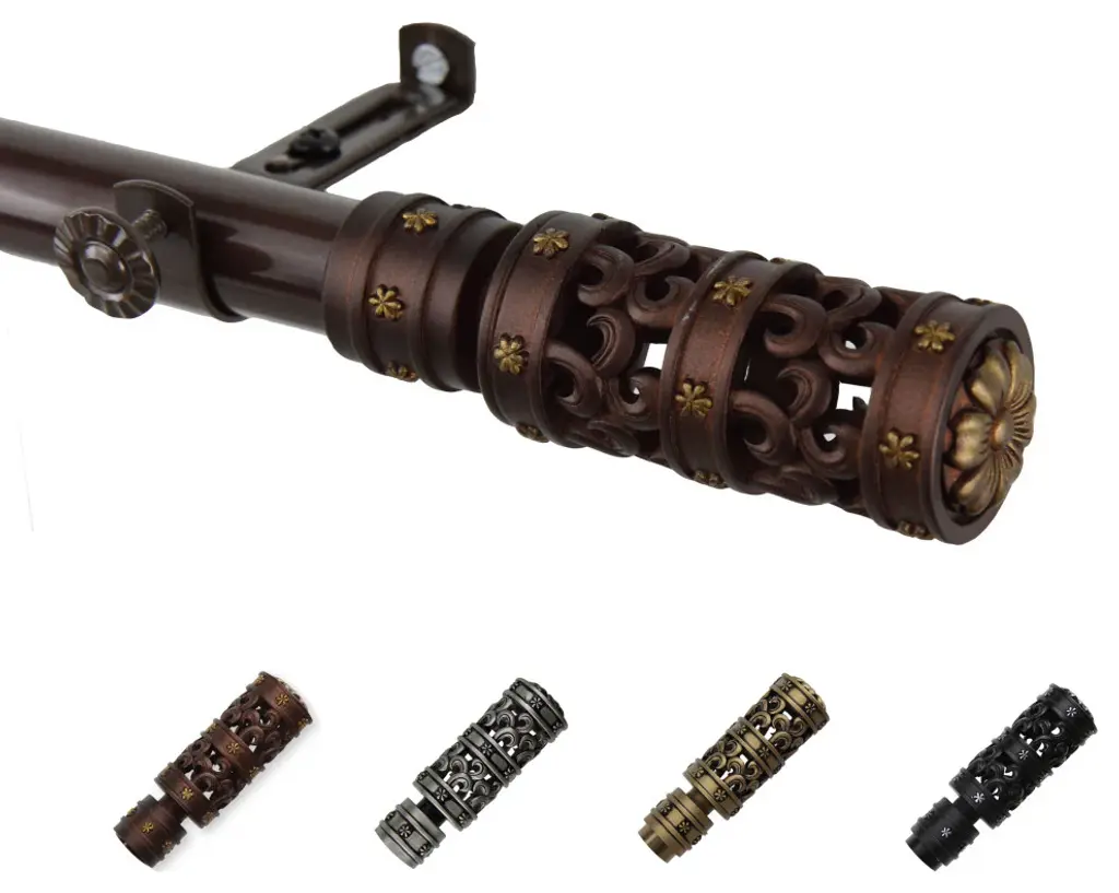Introduce an elegant touch to your window treatment with this beautiful 13/16" diameter curtain rod set, made of high quality steel rods. Includes telescoping steel pole, mounting hardware, brackets, and 2 finials Projection: 2.875" Finial measurement: 4" W x 1.5" H x 1.5" D