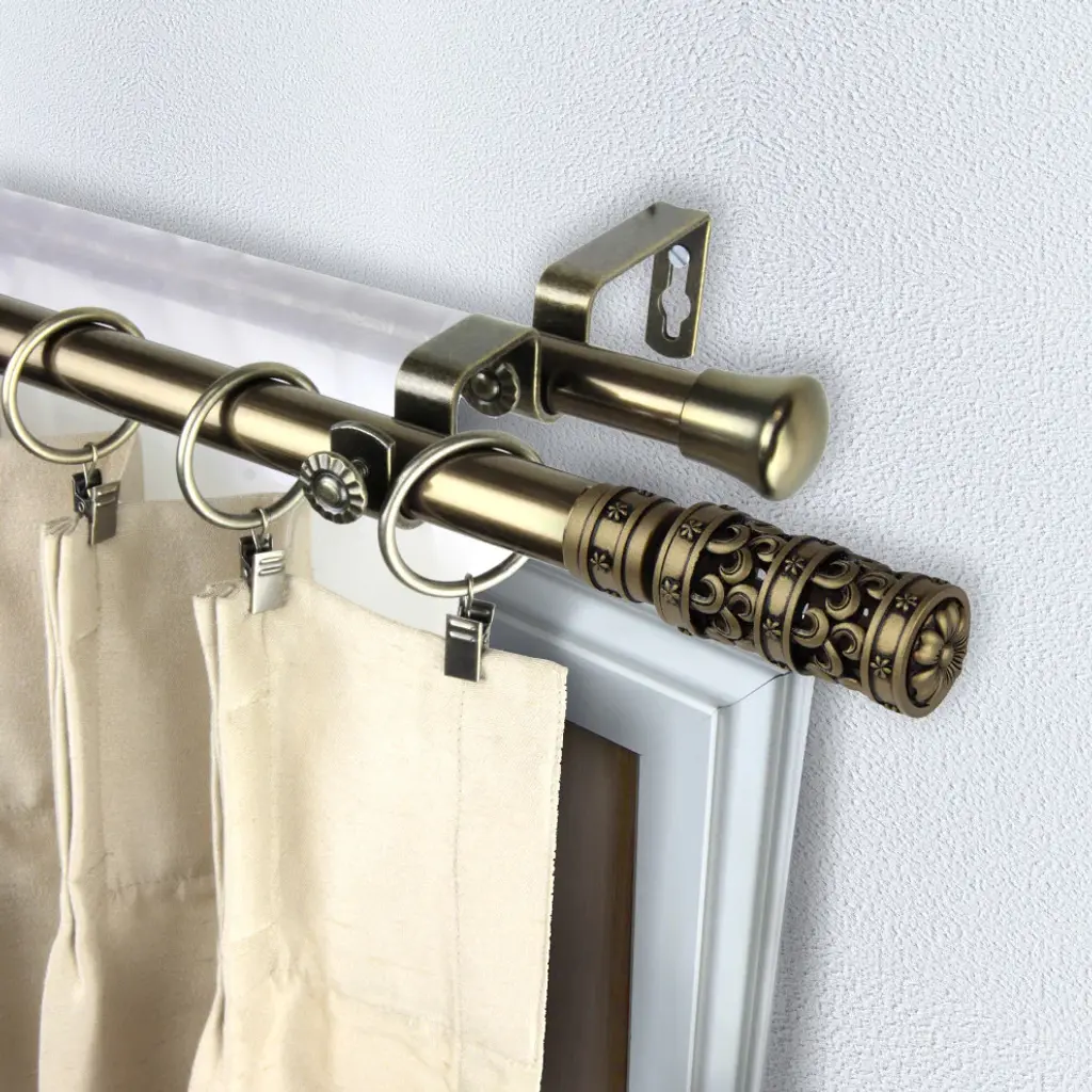 Introduce an elegant touch to your window treatment with this beautiful 13/16" diameter double curtain rod set, made of high quality steel rods. Includes 2 telescoping steel pole, mounting hardware, brackets, and 2 finials Projection: 2.875" Finial measurement: 4" W x 1.5" H x 1.5" D