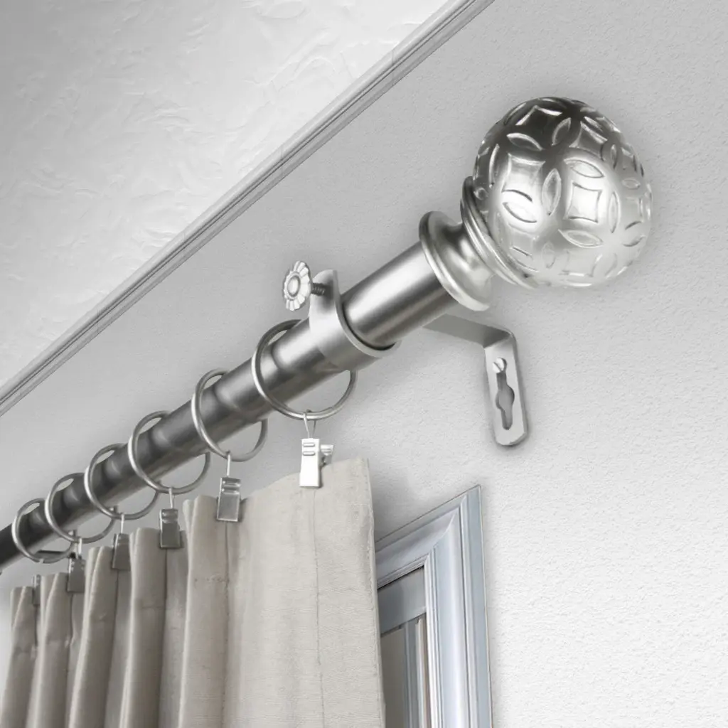 Includes: 1" curtain rod, finials, mounting hardware. Projection: 3.625" Finials Measure: 3" x 2.5" x 2.5"